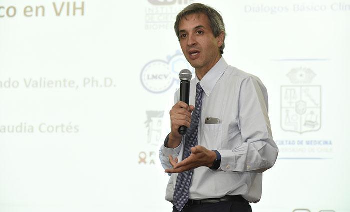 El profesor Valiente profundizó además en los desafíos relacionados a las terapias y la inversión en investigación y comentó que la forma de abordar el VIH ha ido evolucionando hacia una mirada multidisciplinaria. "Este tema lo venimos trabajando desde hace más de 15 años con nuestro colegas básicos, sin embargo hoy día tenemos una colaboración fructífera con profesionales clínicos y epidemiológicos", dijo.