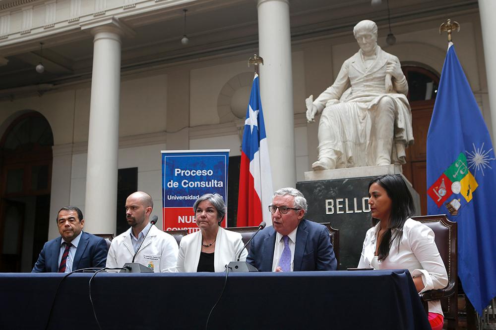 En el Patio de Bello de la Casa Central de la Universidad de Chile, se realizó el punto de prensa para anunciar el plan de acción frente a los múltiples traumas oculares.