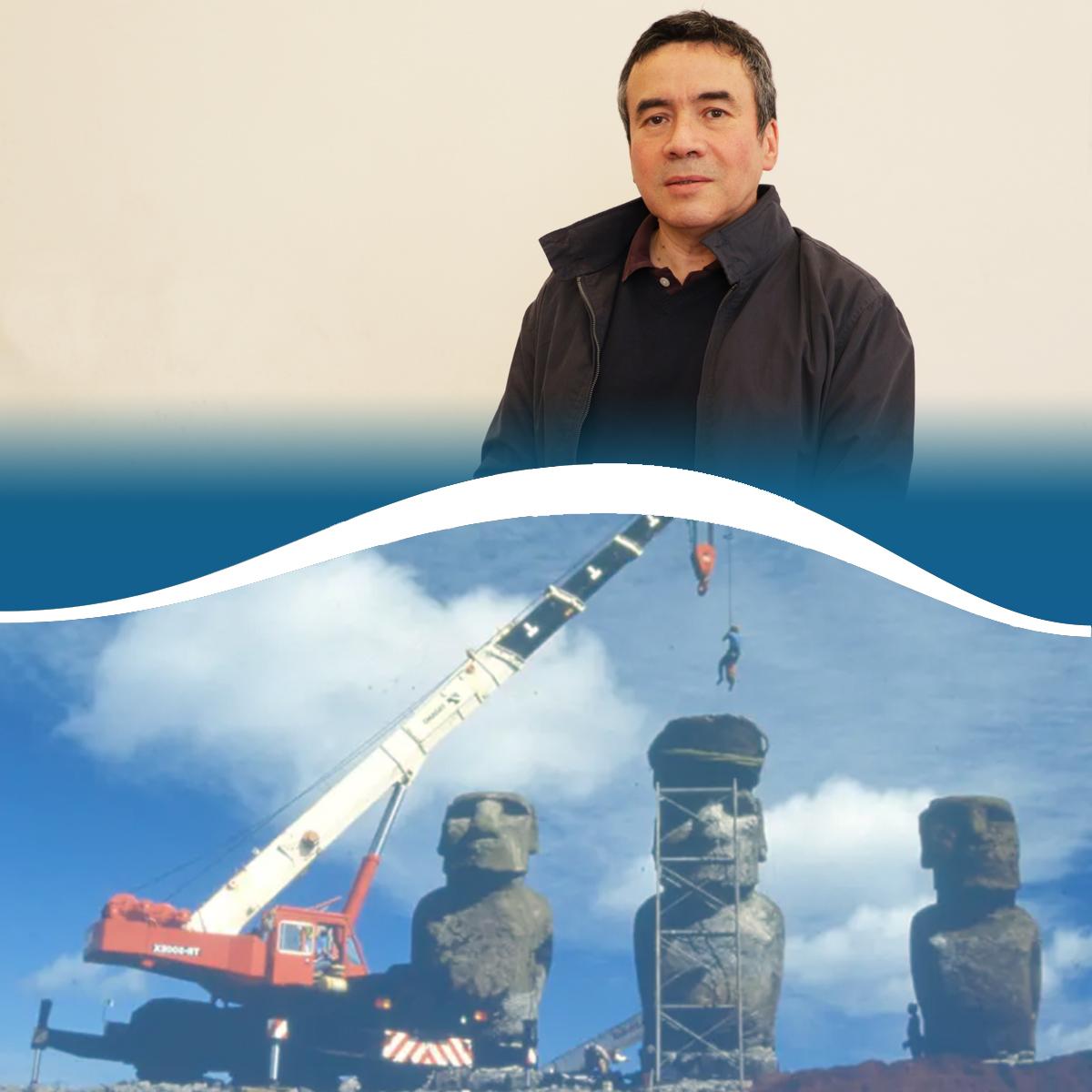 Una grúa donada por la empresa japonesa Tadano fue el impulso definitivo para el proyecto de restauración de Ahu Tongariki, una idea desarrollada durante la década de los 80, pero que era vista casi como una locura, confiesa el profesor Claudio Cristino. La titánica tarea, liderada junto a la también arqueóloga y académica de la Facultad de Ciencias Sociales de la Universidad de Chile, Patricia Vargas, involucró a un equipo que mantuvo trabajando a más de 50 personas en promedio durante cinco años.