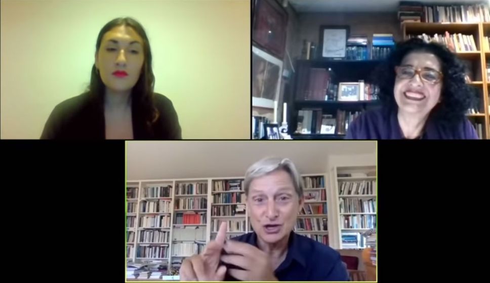 La vicerrectora Faride Zerán abordó las desigualdades estructurales acentuadas durante la pandemia y cómo el coronavirus ha afectado más a las comunidades afrodescendientes y latinas en Estados Unidos, mientras que en Chile ha cobrado la vida, sobre todo, de las personas que viven en los sectores más populares. Asimismo, mencionó las protestas sociales en Estados Unidos como parte del movimiento Black Lives Matter y consultó a Judith Butler sobre la incidencia de ambos acontecimientos en el país.