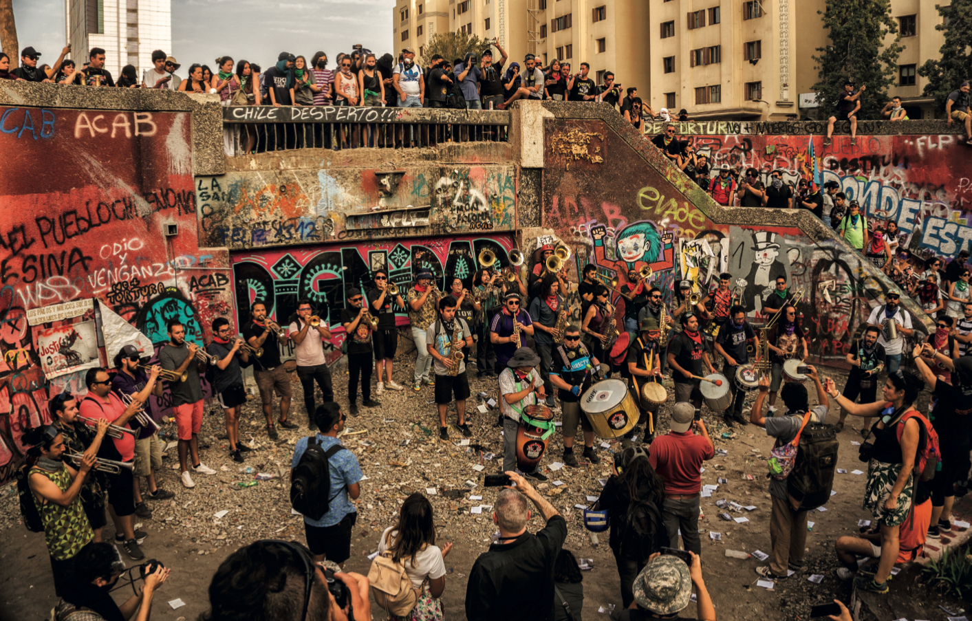 Paula relata que una de las motivaciones para realizar este libro fue el hecho de que los tres compiladores vivieron de forma muy intensa el estallido social durante el año pasado. “A los tres nos llamaba especialmente la atención el uso del espacio público como escenario de performance, las murallas como papel en blanco y nos interesó desde un principio el uso que se le estaba dando a la ciudad, en un nivel artístico y estético, en medio de la protesta”, sostiene.