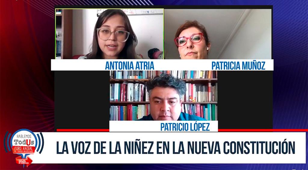 En esta ocasión, el evento se tituló Hacia una sociedad de derechos: La voz de la Niñez en la nueva Constitución, y participaron la Senadora Universitaria y estudiante de Sociología de nuestra Universidad, Antonia Atria, y la abogada y Defensora de la Niñez, Patricia Muñoz. Moderó el director de Radio Universidad de Chile, Patricio López.