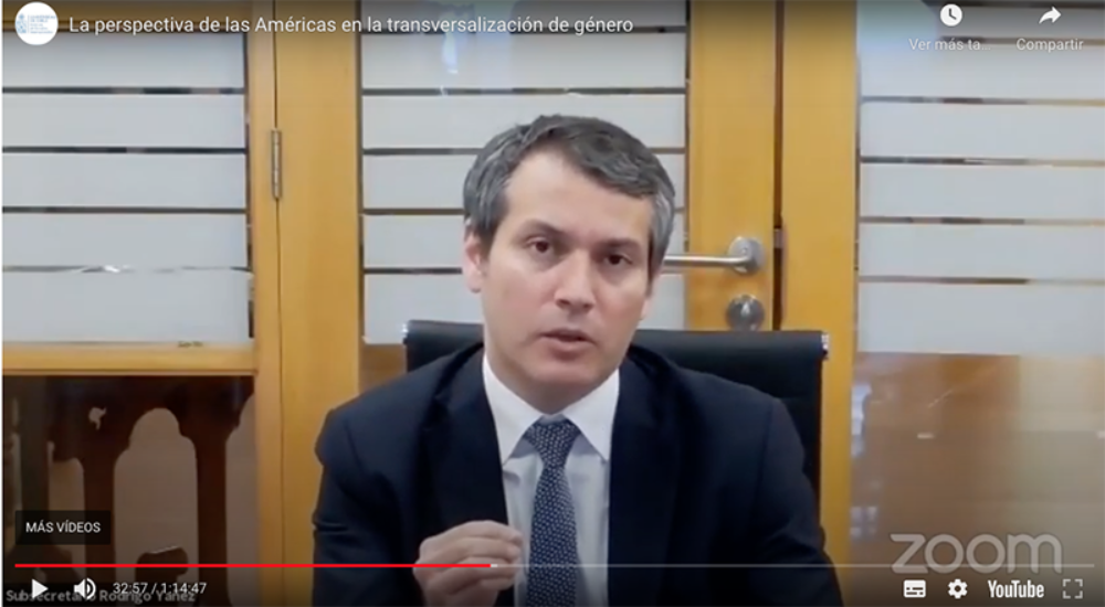 Es por ello que, en el marco del Ciclo Género y Comercio, que organiza el Programa de Cátedras OMC de Chile, México y Barbados, se realizó una nueva sesión para abordar el tema "La perspectiva de las Américas en la transversalización de género". Sobre el particular, expusieron la Subsecretaria de Comercio Exterior de México, Luz María de la Mora, y el Subsecretario de Relaciones Económicas Internacionales de Chile, Rodrigo Yáñez.