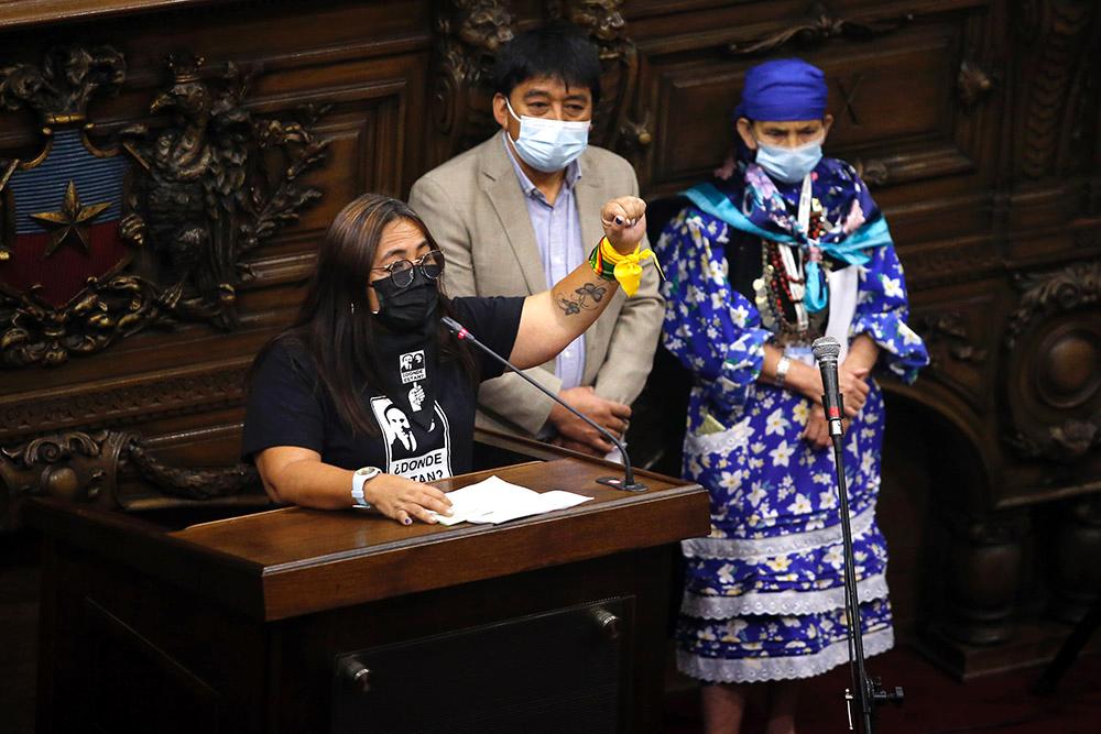 “Tenemos puesta nuestra fe y nuestra esperanza para el cambio de nuestro Chile, en la Convención, que fue posible gracias al estallido social, a la lucha de todos nuestros compañeros, a la lucha que se llevó vidas, que costó sangre de nuestro pueblo”, señaló Fabiola Campillai, acompañada de aplausos y diversas muestras de apoyo en la sala. “Debemos exigir libertad a nuestros presos mapuches políticos, libertad a nuestros presos políticos del estallido social, verdad, justicia, reparación integral, garantía de no repetición, si queremos escribir un futuro nuevo”, agregó.