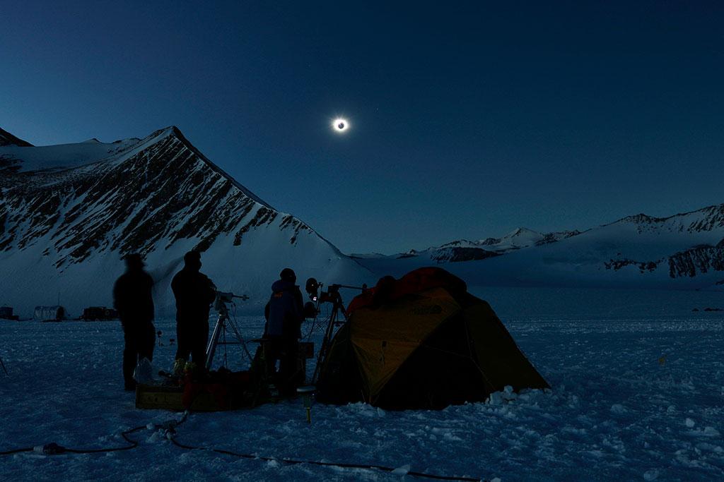 Luego de más de 14 días de espera y seis horas de vuelo hasta la base chilena más cercana al Polo Sur, el equipo científico pudo levantar su campamento en la zona del Glaciar Unión, en las cercanías del Monte Rossman, para observar el eclipse solar que ocurrió en la madrugada del pasado sábado 4 de diciembre.