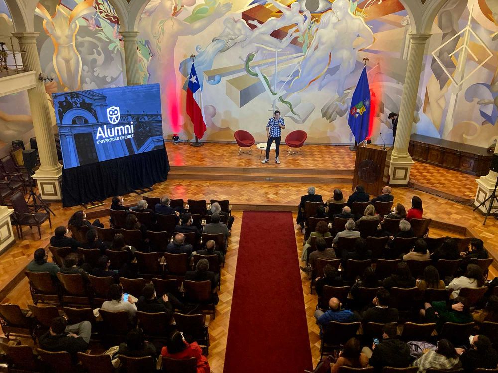 Vicho Viciani fue parte del hito fundacional de Alumni, realizado el pasado jueves 17 de junio en el Salón de Honor de la Casa Central de la Universidad de Chile, donde hizo reír a todas y todos los invitados. Este tipo de eventos le han permitido ampliar su público, el que ha capitalizado principalmente en redes sociales. De esta forma, encontró su lugar en el mundo. Camilo “Vicho” Viciani es parte de la red de egresadas y egresados de la Comunidad Alumni de la Universidad de Chile. Para conocer más de esta nueva iniciativa, regístrate aquí en alumni.uchile.cl.