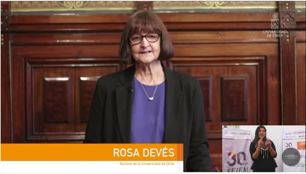Por su parte, la Rectora de la Universidad de Chile, Rosa Devés, envío su saludo a través de un video. En él, la máxima autoridad del plantel señaló que “he participado por varios ya, casi 20 años, en una comunidad en que hemos impulsado en conjunto, con ustedes, con muchos de los que están hoy día presentes, la indagación en ciencias a nivel educativo, la posibilidad de los niños de aprender ciencia a través del descubrimiento. Es muy importante que 20 años después estemos preocupados y juntos trabajando por algo tan importante como es precisamente el adaptarnos, la adaptación al cambio climático”.
