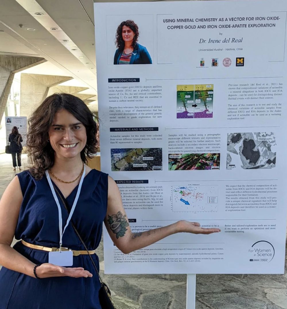 Irene actualmente trabaja como académica en la Universidad Austral de Chile (UACh), en Valdivia. Desde ahí, ha desarrollado un trabajo que le ha permitido adentrarse en el área de geología económica y la minería, lugares que históricamente han sido masculinizados y que este premio busca combatir.