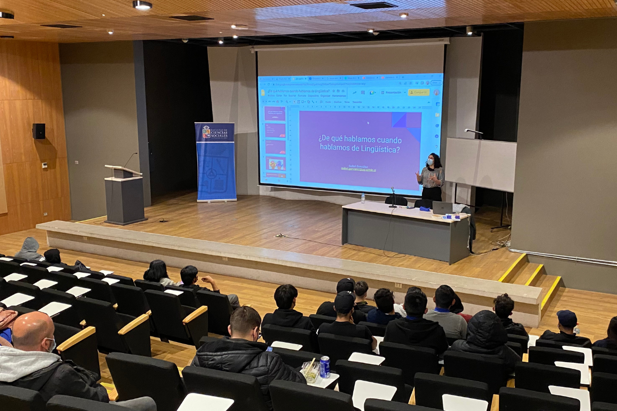 Posteriomente los y las estudiantes participaron de la charla "De qué hablamos cuando hablamos de linguística", a cargo de Isabel González, gracias a la alianza entre el PACE UCH y la Inicitativa Alumi, en la que se puso énfasis en entender los contextos del habla y las diferencias lingüísticas que existen entre generaciones.