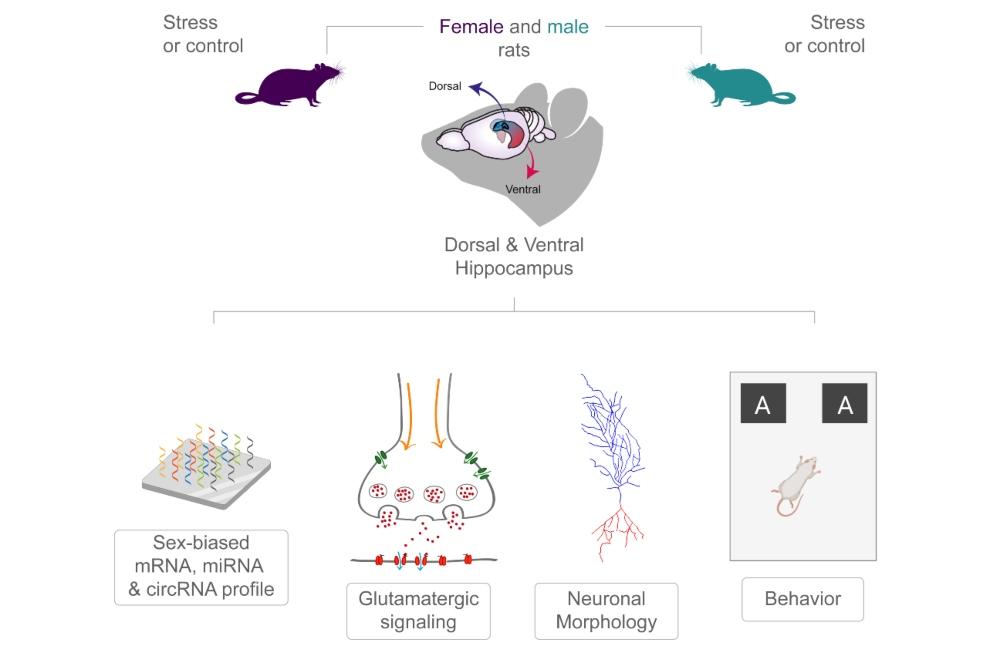 La investigación, financiada por el Fondo Nacional de Desarrollo Científico y Tecnológico (Fondecyt) para el período 2019-2023 y apoyada por la Vicerrectoría de Investigación y Desarrollo (VID) de la Universidad de Chile, tiene como objetivo identificar blancos moleculares involucrados en respuestas maladaptativas al estrés crónico (CS) en ratas hembras y machos. Estas comparaciones pueden develar vías que regulan el funcionamiento del hipocampo y respuestas de susceptibilidad y/o resiliencia según el sexo ante un mismo estresor.