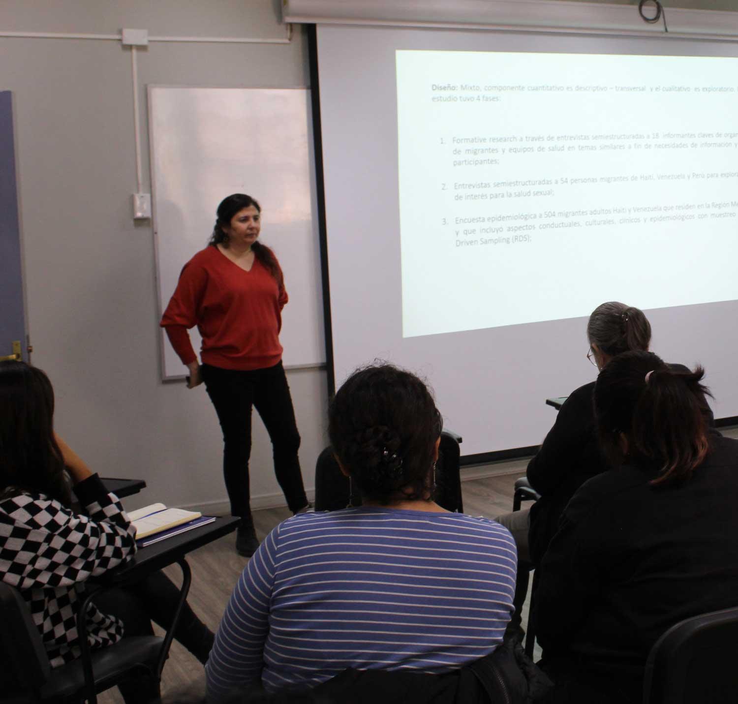El equipo detrás de este trabajo fue encabezado por la profesora de la Escuela de Salud Pública de la Universidad de Chile, Julieta Belmar, y lo integraron Valeria Stuardo como investigadora alterna, Laia Ferrer, Mauricio Fuentes, Claudia Cortés, Kenny Low, Jennifer Toller Erausquin, Loreto Pantoja, Anne Reevka y Nosika Janvier. Entre sus principales hallazgos, la investigación identificó la necesidad de que el personal sanitario que aborda consultas sobre salud sexual integren la dimensión de la diversidad de la población migrante, factor que busca considerar sus prácticas, contextos de vulnerabilidad y barreras de acceso al sistema.