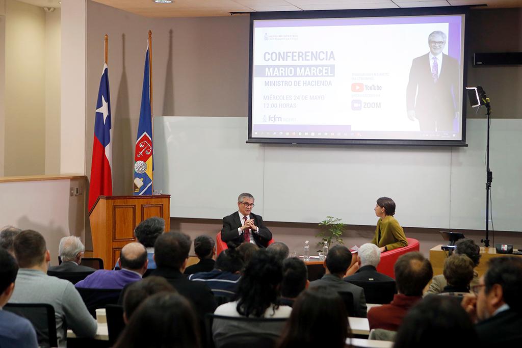 El ministro de Hacienda, Mario Marcel, fue invitado por el Departamento de Ingeniería Industrial de la Universidad de Chile para realizar la conferencia “Chile: sentando las bases para el mediano plazo”, instancia en la que profundizó sobre las fortalezas, oportunidades, debilidades y amenazas que enfrenta la economía chilena en relación a su crecimiento y desarrollo. Concluida su presentación, además, conversó con la académica Pamela Jervis, con quien abordó temas sobre descentralización, reforma tributaria, educación y evaluación de proyectos públicos.