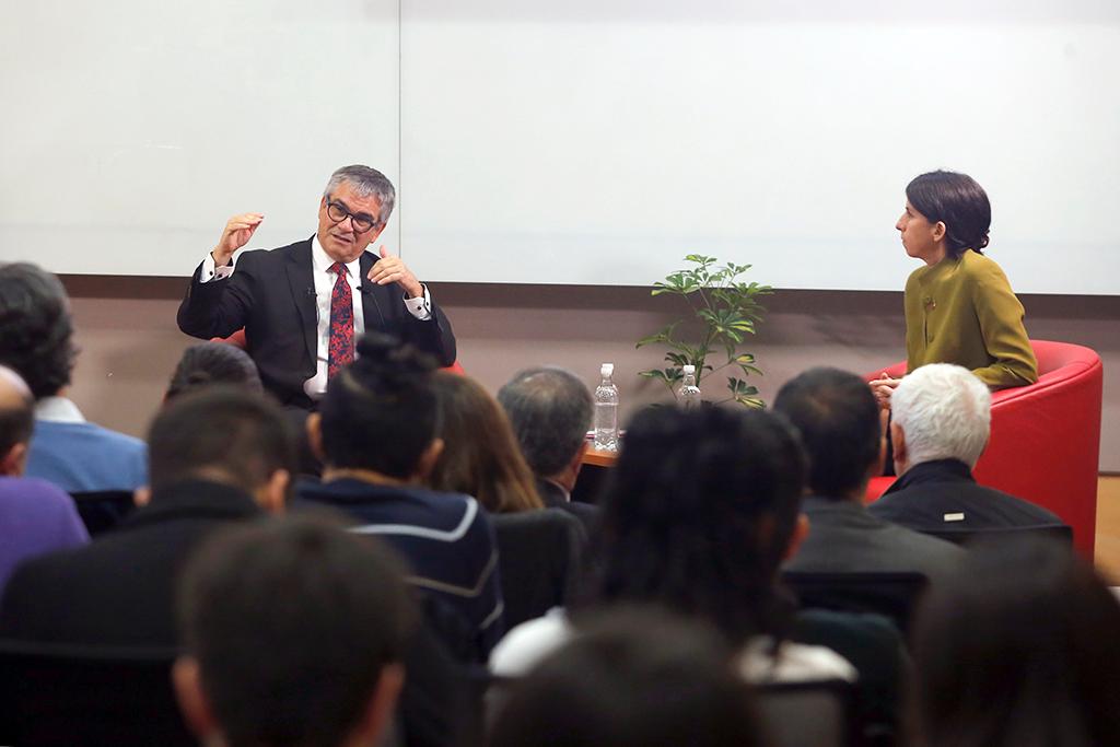 Concluida su presentación, Marcel conversó con la académica del Departamento de Ingeniería Industrial de la Universidad de Chile, Pamela Jervis. En este espacio, donde abordó temas como descentralización, reforma tributaria, educación y evaluación de proyectos públicos, respondió diversas preguntas. Consultado sobre la reforma tributaria que continúa pendiente, Marcel dijo que lo que se tiene que hacer ahora es modificar las propuestas del Ejecutivo, de tal manera que estas sean capaces de concitar un apoyo transversal.