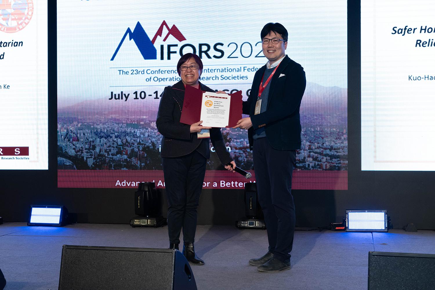 El primer lugar lo obtuvo Taiwán, con el paper “Safer Homeland: Developing Evacuation Simulation and Humanitarian Relief Logistics Models for Effective Disaster Preparation and Response in Taiwan” (K-H. Chang, T-Y. Hsiung, Y-Z. Wu, R. Cuckler, T-Y. Chang, S-S. Ke.) El trabajo propone un modelo de simulación que considera las decisiones que toman los individuos afectados por un terremoto al evacuar una zona de riesgo a pie, y, en paralelo, un modelo de logística de ayuda humanitaria que optimiza la ruta de vehículos para satisfacer la demanda por artículos de primera necesidad en los centros de socorro y distribuirlos en un tiempo mínimo. Estos dos modelos se integran en una herramienta de apoyo a la toma de decisiones denominado Comprehensive Disaster Decision Support System. El equipo de investigadores desarrolló conocimiento clave que llevó a los funcionarios de gestión de desastres de Taiwán a modificar las políticas de evacuación y logística humanitaria, para disminuir el sufrimiento humano y la pérdida de vidas.