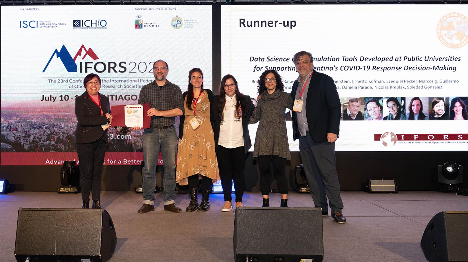 El trabajo del grupo argentino “Data Science and Simulation Tools Developed at Public Universities for Supporting Argentina’s COVID-19 Response Decision-Making” (R. Castro, R. Grimson, D. Feierstein, E. Kofman, E. Pecker-Marcosig, G. Durán, A. Farall, J. García, D. Parada, N. Kreplak, S. Gonzalez) fue galardonado con el segundo lugar en la competencia. Este destacó por el enfoque multidisciplinario de un grupo de informáticos, ingenieros y matemáticos colaborando con científicos sociales, biólogos y personal de la salud para generar recomendaciones en el enfrentamiento de la pandemia de COVID-19 para los tomadores de decisiones, principalmente, del Ministerio de Salud de la Provincia de Buenos Aires.