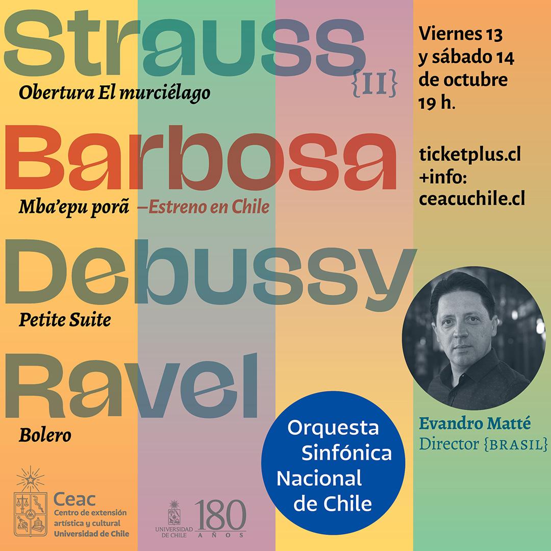 La temporada de la Orquesta Sinfónica Nacional de Chile continúa el viernes 13 y sábado 14 de octubre a las 19:00 horas con un concierto que contempla un variado programa que contará con la batuta del director brasileño Evandro Matté, quien llega por primera vez al país.