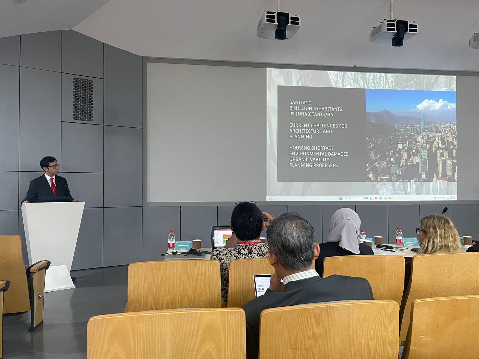 Junto con participar de la Ceremonia Inaugural y de las actividades de la Conferencia Internacional de la Alianza Internacional de Universidades de Arquitectura y Tecnología de la Ruta de la Seda (SRIAATU), el Director Opazo participó en el Foro de Cooperación de la Alianza entre Universidades de Arquitectura, realizando una presentación de la FAU en la que abordó temáticas asociadas al trabajo académico y a la investigación vinculados a la cooperación internacional.