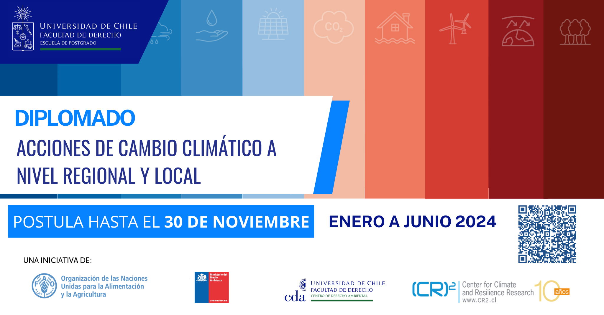 El diplomado "Acciones de Cambio Climático a nivel regional y local" se enmarco en el proyecto "Acción, Territorio y Clima", ejecutado por el Ministerio del Medio Ambiente y la Organización de las Naciones Unidas para la Alimentación y la Agricultura (FAO), con el fin de fortalecer las capacidades técnicas e institucionales a nivel subnacional y local en Chile para la efectiva implementación de la Ley Marco de Cambio Climático y sus instrumentos relacionados.