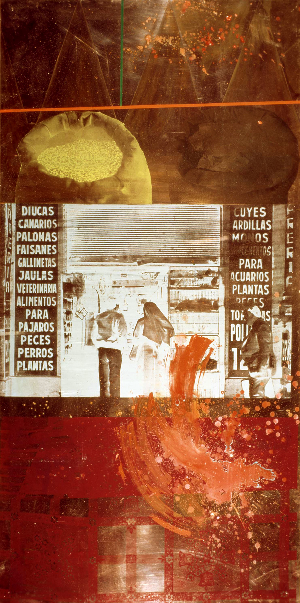 Al igual que la tradición documental norteamericana instaurada luego de la Gran Depresión, Robert Rauschenberg tomó fotografías en blanco y negro de todo aquello que punzó su miradaen el territorio chileno. “Uso mis ojos, y cualquier cosa que aparece frente mío, y que no entiendo o que nunca he visto antes se vuelve parte de mi paleta (…). Todo es una aventurapara mí dado que no pertenezco a este lugar”. También conversó con las personas que cruzó a lo largo de su recorrido, observó caminos, paisajes y objetos hasta el dolor de sus ojos y demarcó nuevas carreteras en el desierto, conduciendo por caminos que hasta ese momento aún no habían sido trazados. De vuelta a su taller en EE.UU., tal como detalla la autora Camila Estrella, Rauschenberg procesaba las imágenes que había tomado y producía obras específicas de acuerdo al lugar recorrido que luego eran expuestas en el mismo. Todo esto, replicado en diez países distintos, formó parte del ambicioso proyecto ROCI, Rauschenberg Overseas Culture Interchange (o en palabras de la autora, “gira interoceánica). El periplo inició en México, país que el artista visitó poco antes de arribar a Santiago, que fue su segundo destino en la constelación de lugares que compusieron este proyecto. (Por Vania Montgomery)