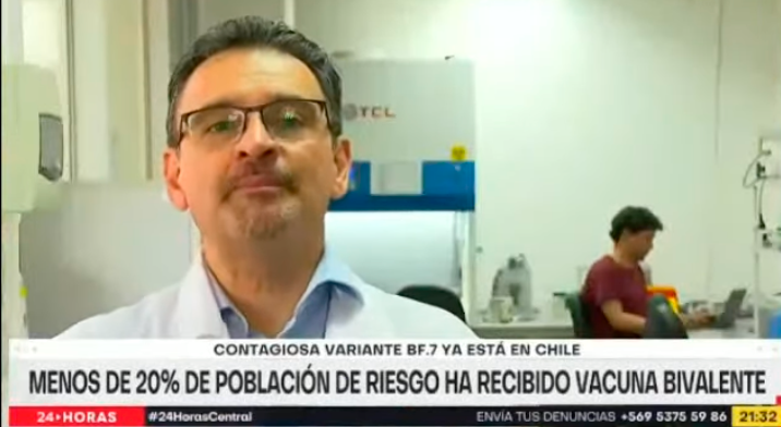 Reportaje en 24 Horas Central de TVN, sobre vacuna bivalente, con DR. Flavio Salazar, investigador del Instituto de Ciencias Biomédicas, ICBM, de la Facultad de Medicina, Universidad de Chile.