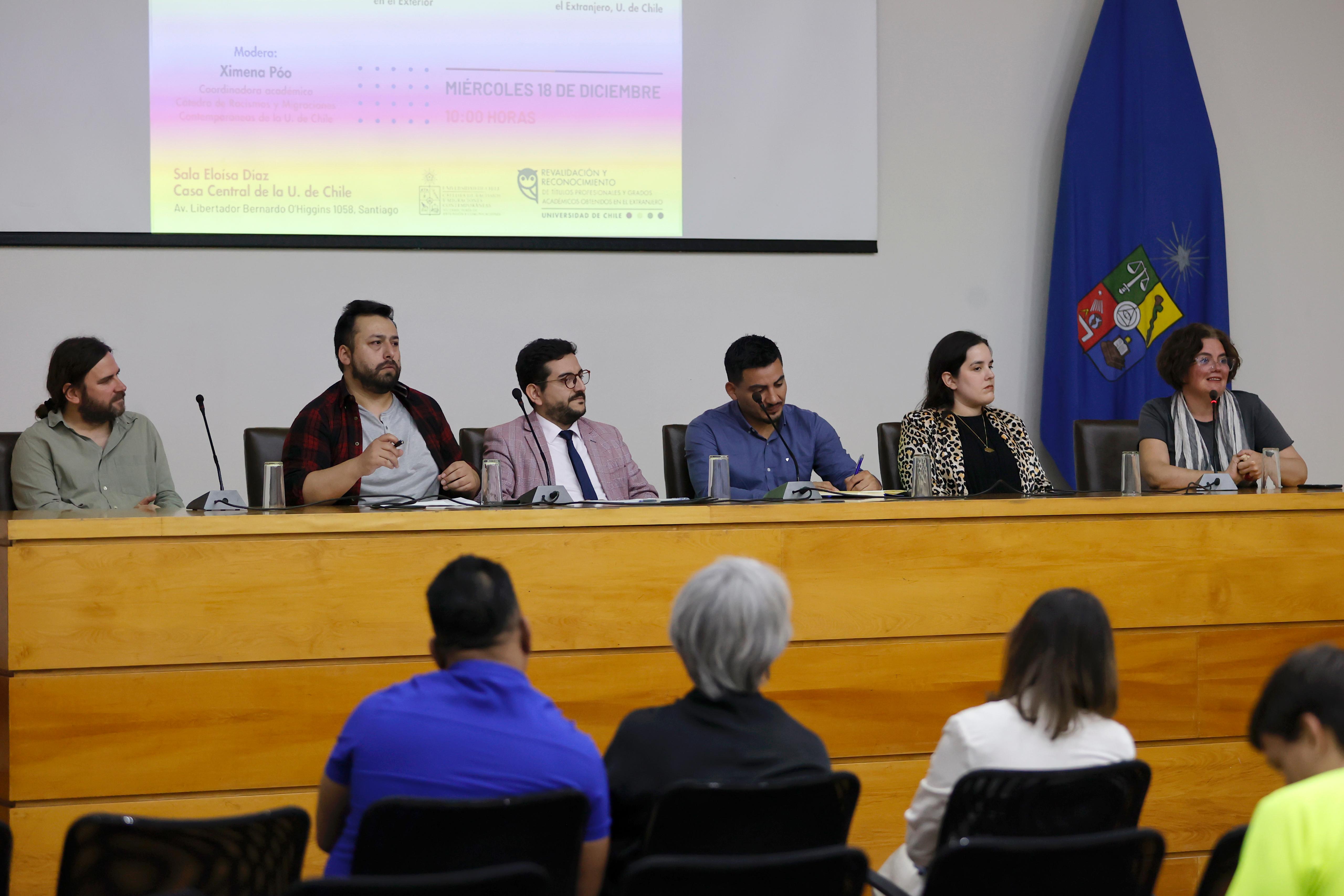 Este miércoles 18 de diciembre se realizó el foro “Revalidación de estudios en el extranjero: Una tarea y un compromiso” en la sala Eloísa Díaz de Casa Central de la U. de Chile. Además, contempló una feria informativa con asesorías presenciales sobre la materia.
