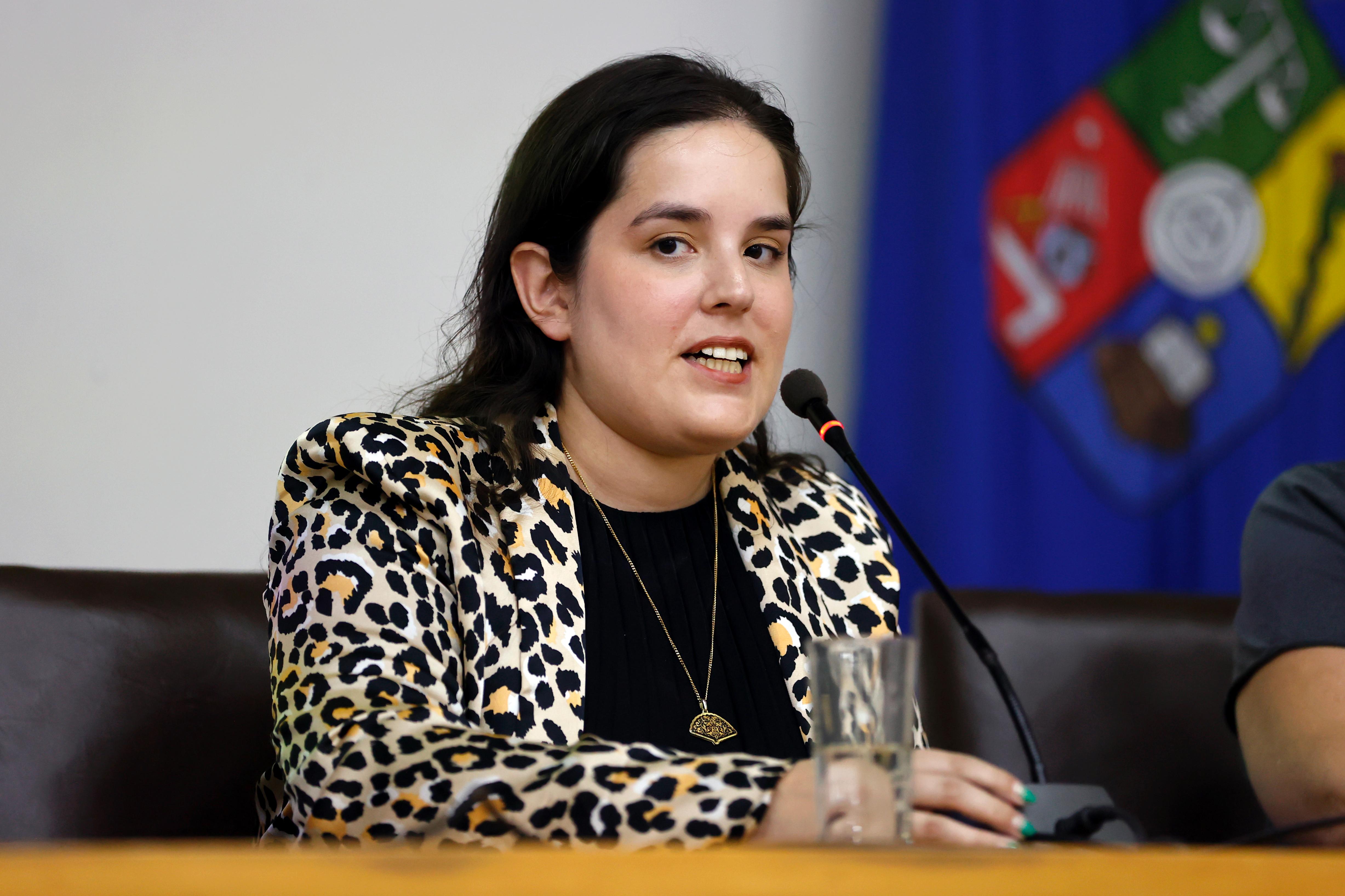 La jefa de la Oficina Revalidación y Reconocimiento de títulos profesionales y grados académicos obtenidos en el Extranjero de la U. de Chile, Camila Sacristán, presentó sobre los pasos a seguir para la revalidación. “Nosotros certificamos la equivalencia entre los títulos y los grados académicos obtenidos en el extranjero con su equivalente chileno”, explicó.