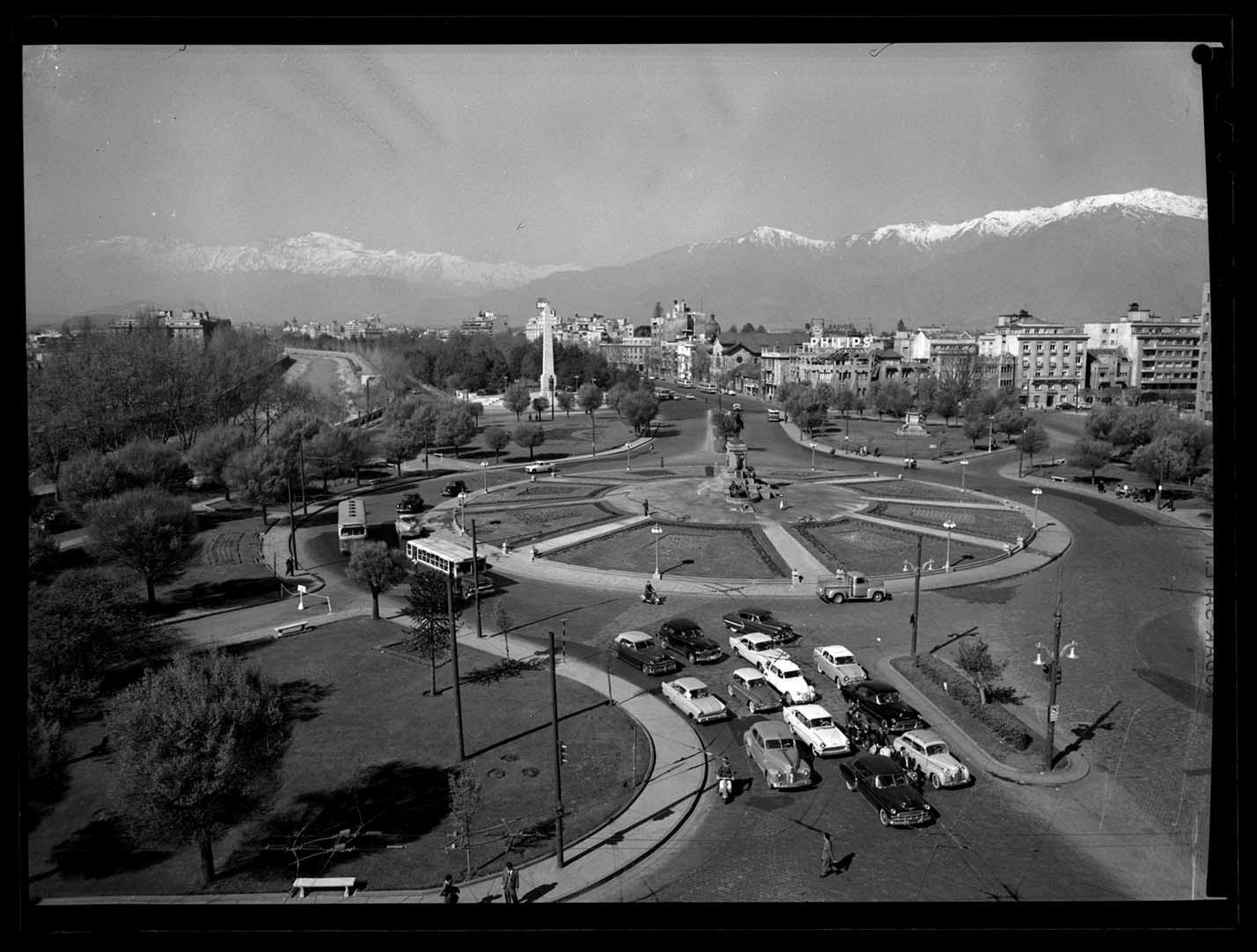Mientras que la segunda imagen, corresponde a un registro realizado por el reconocido fotógrafo de la Universidad de Chile, Mario Guillard. En la fotografía, se puede apreciar una toma elevada y panorámica de la Plaza Baquedano de la ciudad de Santiago en 1960.