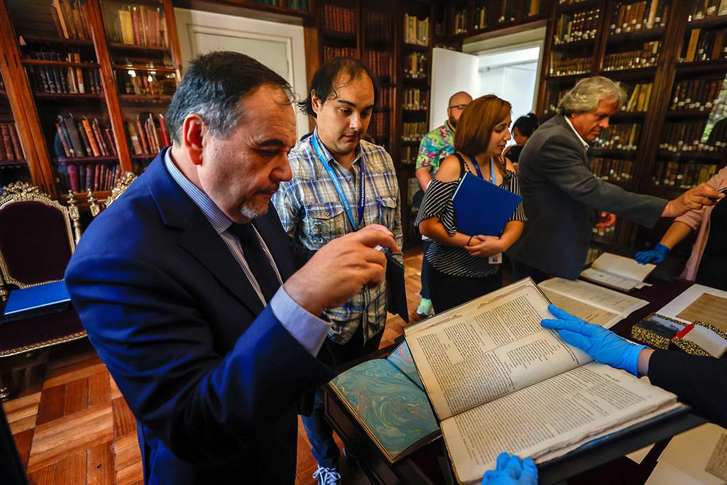 La comitiva encabezada por el director nacional del Registro Civil, Omar Morales Márquez, tuvo la oportunidad de presenciar la labor de funcionarios y funcionarias del Archivo Bello en torno a los ámbitos de conservación, registro y catalogación de la entidad dependiente de la Vicerrectoría de Extensión y Comunicaciones de la Casa de Bello.