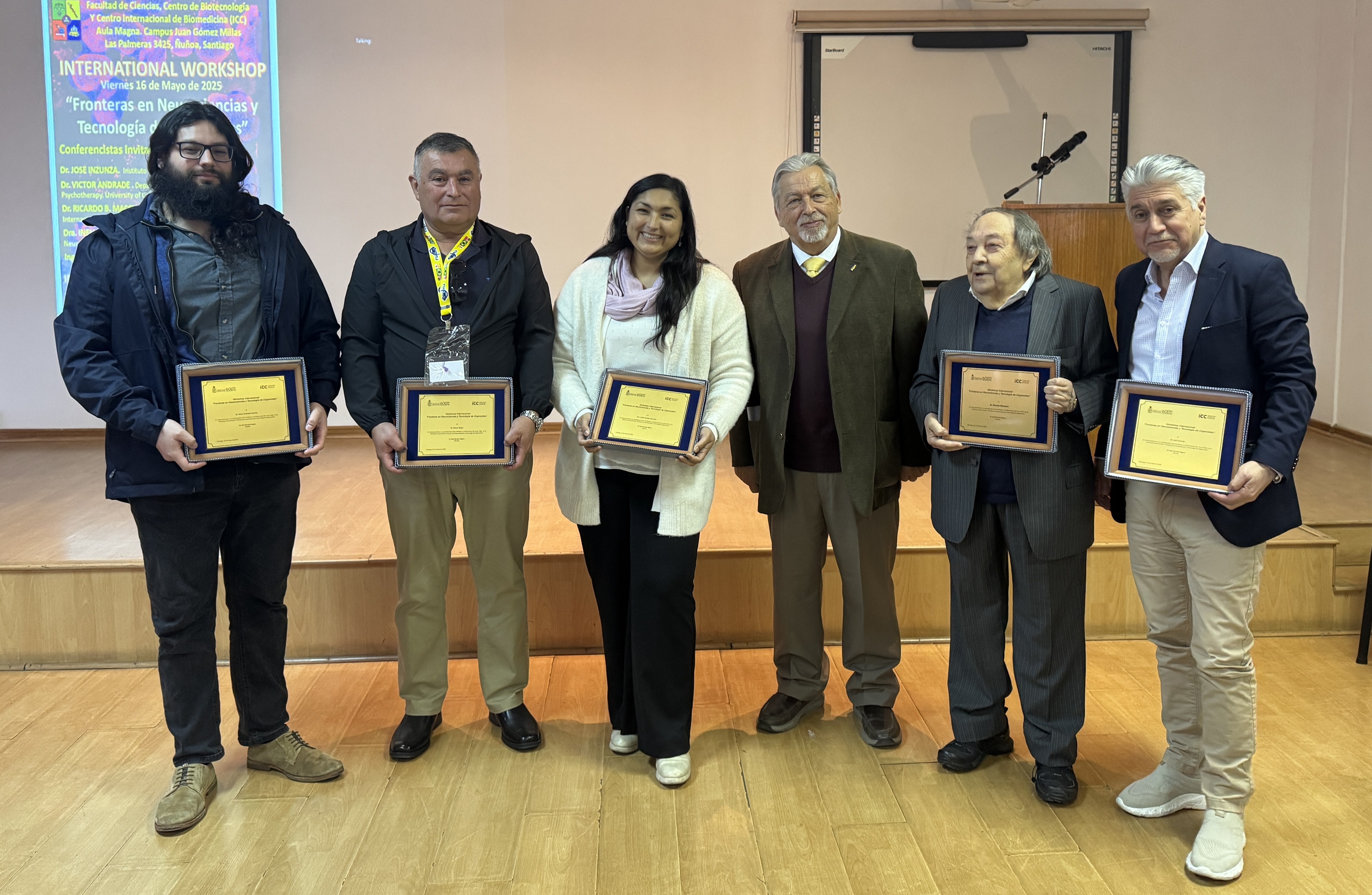 El evento académico tuvo como expositores al Dr. José Insunza del Instituto Karolinska de Estocolmo, Suecia; al Dr. Víctor Andrade del Departamento de Psiquiatría y Psicoterapia de la Universidad de Colonia, Alemania; al Dr. Ricardo Maccioni, académico e investigador del Laboratorio de Neurociencias y Medicina Funcional del Departamento de Biología de la Facultad de Ciencias y Director del Centro Internacional de Biomedicina (ICC); a la Dra. Inelia Morales, Ingeniera en Biotecnología Molecular, Magister en Neurociencias y Biología del Comportamiento y Médico Cirujano; y al Ingeniero Nelson Reyes, M.S. del ICC.