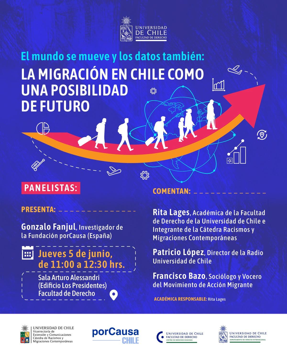 El próximo jueves 5 de junio, la Universidad de Chile recibirá en su Facultad de Derecho una conversación que abordará la narrativa migratoria en Chile y nuevas formas de abordarla. Para esto se presentarán dos informes desarrollados por la Fundación porCausa. Estos estudios muestran de forma contraintuitiva algunas magnitudes sobre las migraciones, abordando, asimismo, tópicos que a menudo son relacionados al debate migratorio, como la seguridad, la pobreza multidimensional, regularización, transición demográfica, entre otros. Estos informes buscan alternativas a los discursos que se han apoderado de la discusión sobre la movilidad humana, destacando el aporte que las personas migrantes generan a nuestro país.