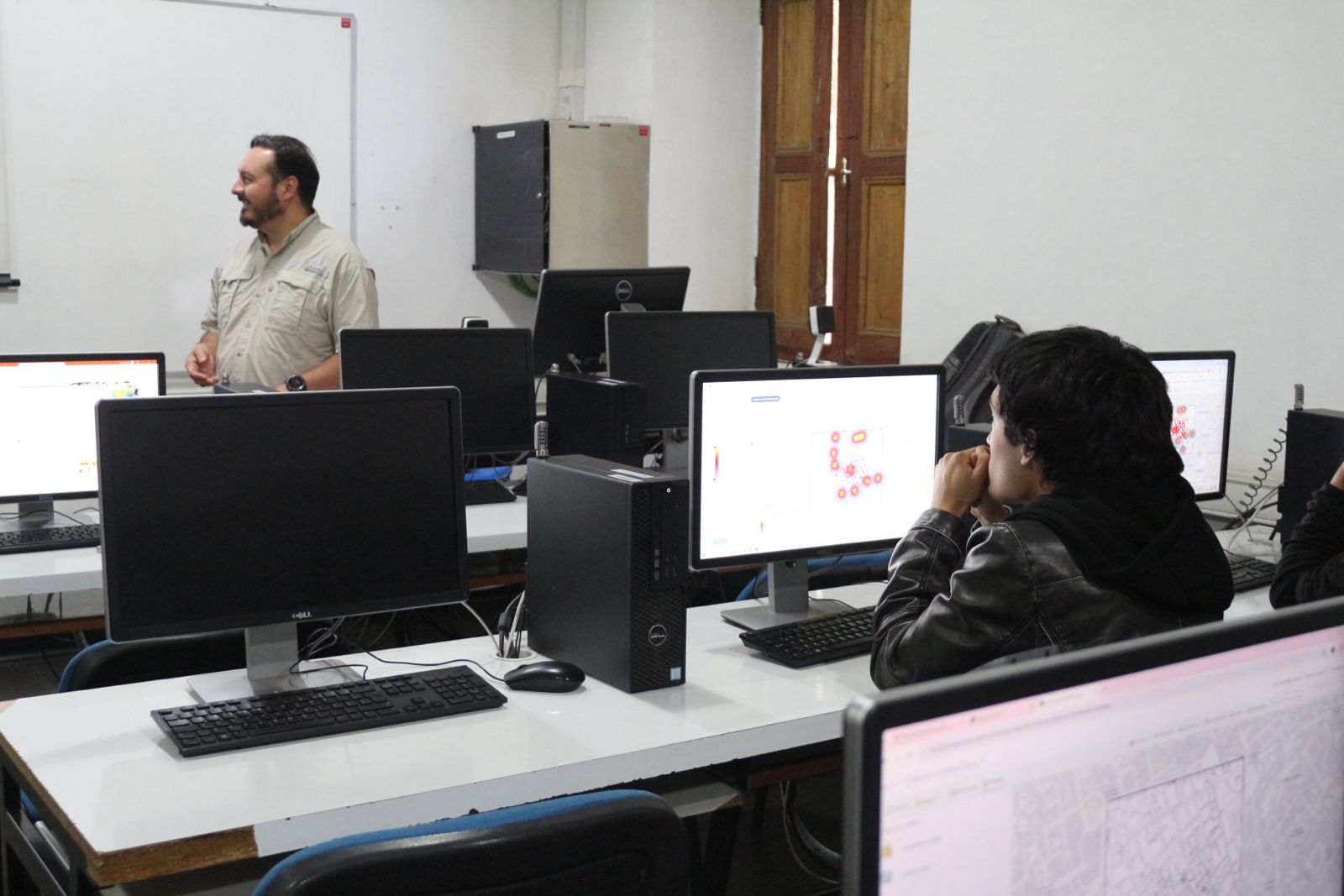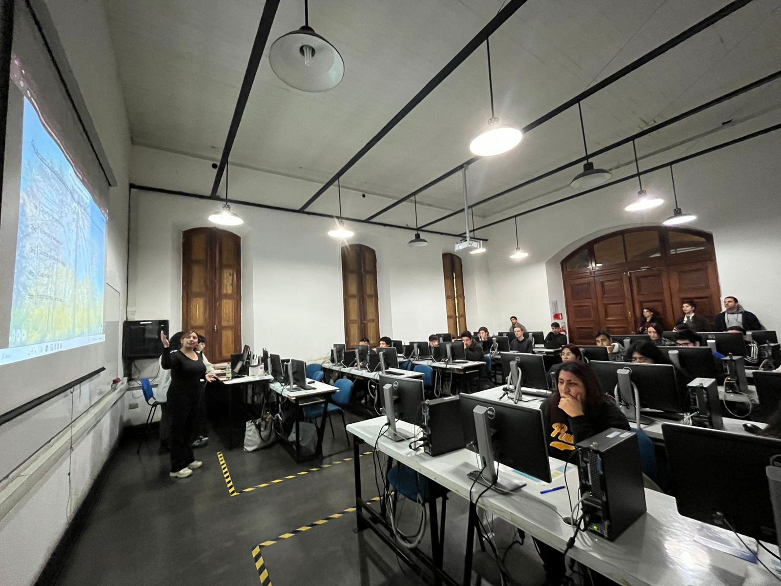 La jornada comenzó con una bienvenida a los estudiantes visitantes en el acceso de calle Portugal, seguida por una presentación de la FAU y sus programas académicos. Posteriormente, el jefe de carrera de Geografía, Profesor Rodrigo Moreno, dio unas palabras de apertura resaltando el compromiso territorial de la disciplina. Luego, el Director del Departamento de Geografía, Profesor Pablo Sarricolea, ofreció una clase demostrativa sobre el uso de drones y sistemas de información geográfica (SIG), introduciendo a los participantes en tecnologías clave para el análisis espacial.