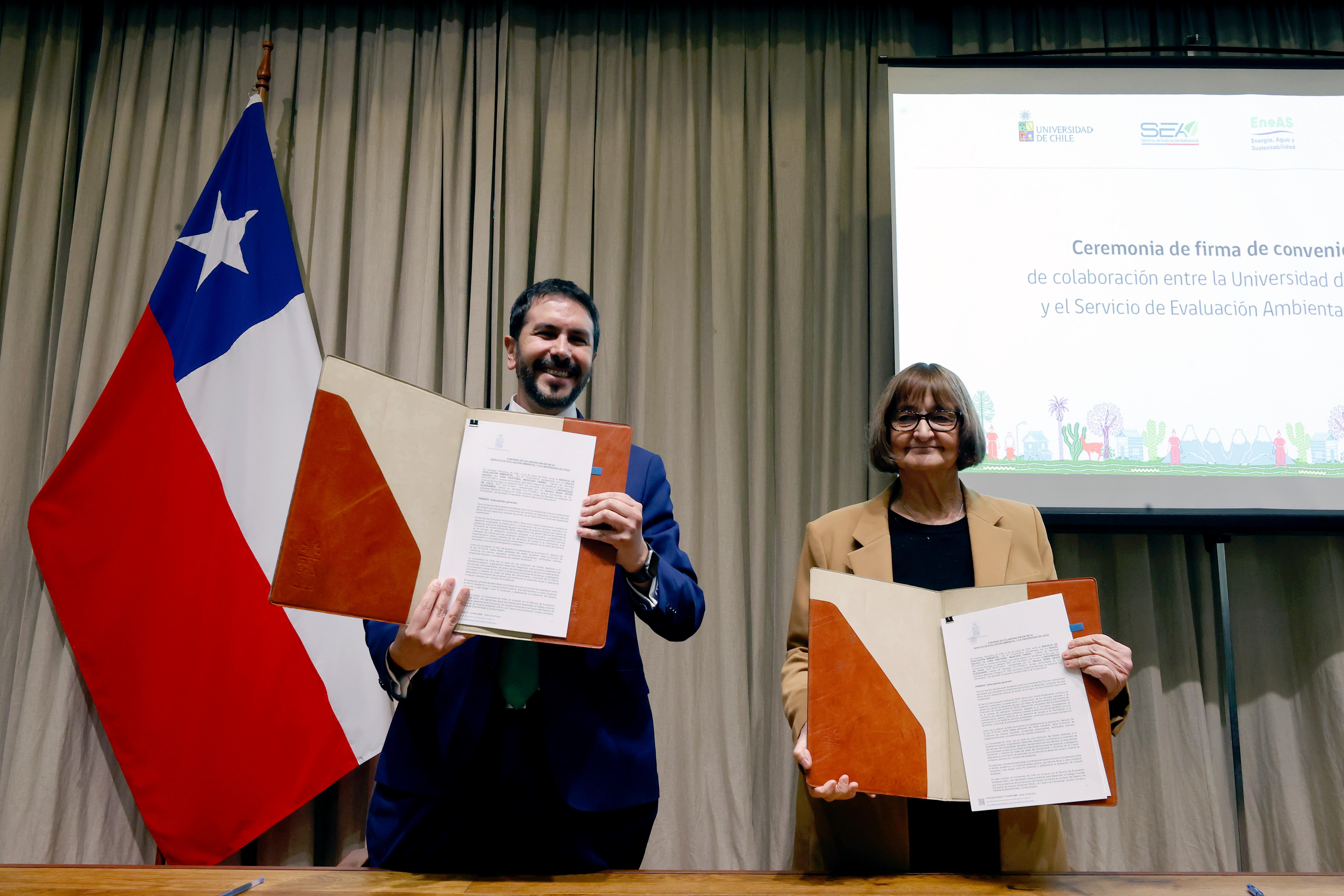 Este lunes 2 de junio, en una ceremonia realizada en el Salón Domeyko de la Casa Central, se suscribió un convenio de colaboración que permitirá la implementación conjunta de esta iniciativa. En la actividad participaron la Rectora de la Universidad de Chile, Rosa Devés; el subsecretario del Medio Ambiente, Maximiliano Proaño; y la directora ejecutiva del SEA, Valentina Durán.