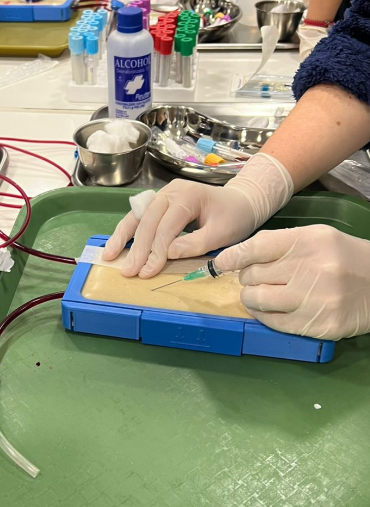 El resultado del trabajo conjunto es un modelo de simulación que permite practicar la punción venosa con mayor realismo: “Trabajamos bajo el concepto de replicar la experiencia: cuando pinchas una vena, sientes una pequeña resistencia, y al atravesarla, puedes percibir claramente que ingresaste. Queríamos que el estudiante viviera esa sensación”, señaló el profesor Cristian Pérez.