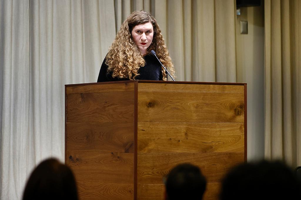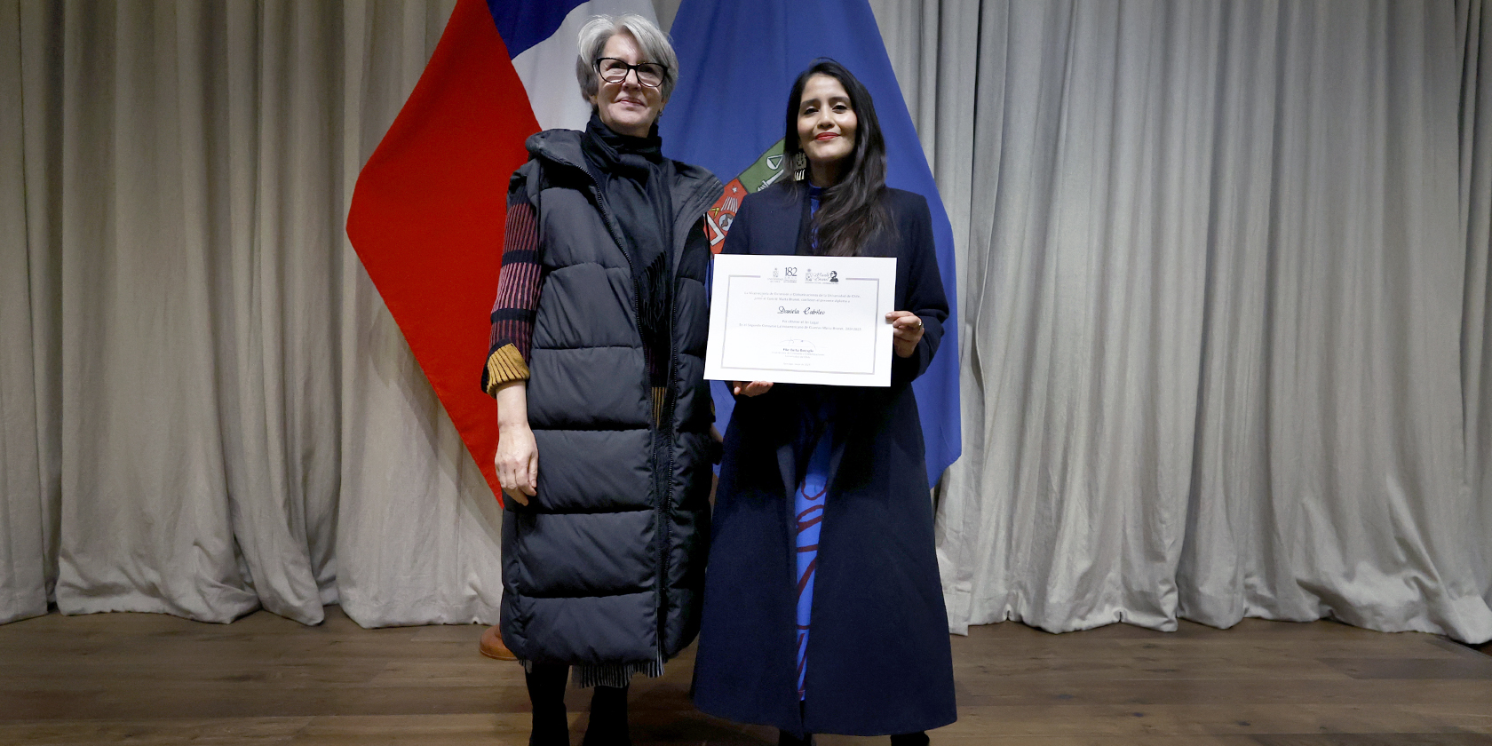 Con un afectuoso saludo al público, la poeta mapuche Daniela Catrileo comenzó sus agradecimientos reflexionando en torno a lo que significaba para ella este evento: “Escribo para reverberar en la voz de mis abuelas y para propagar su tejido”.