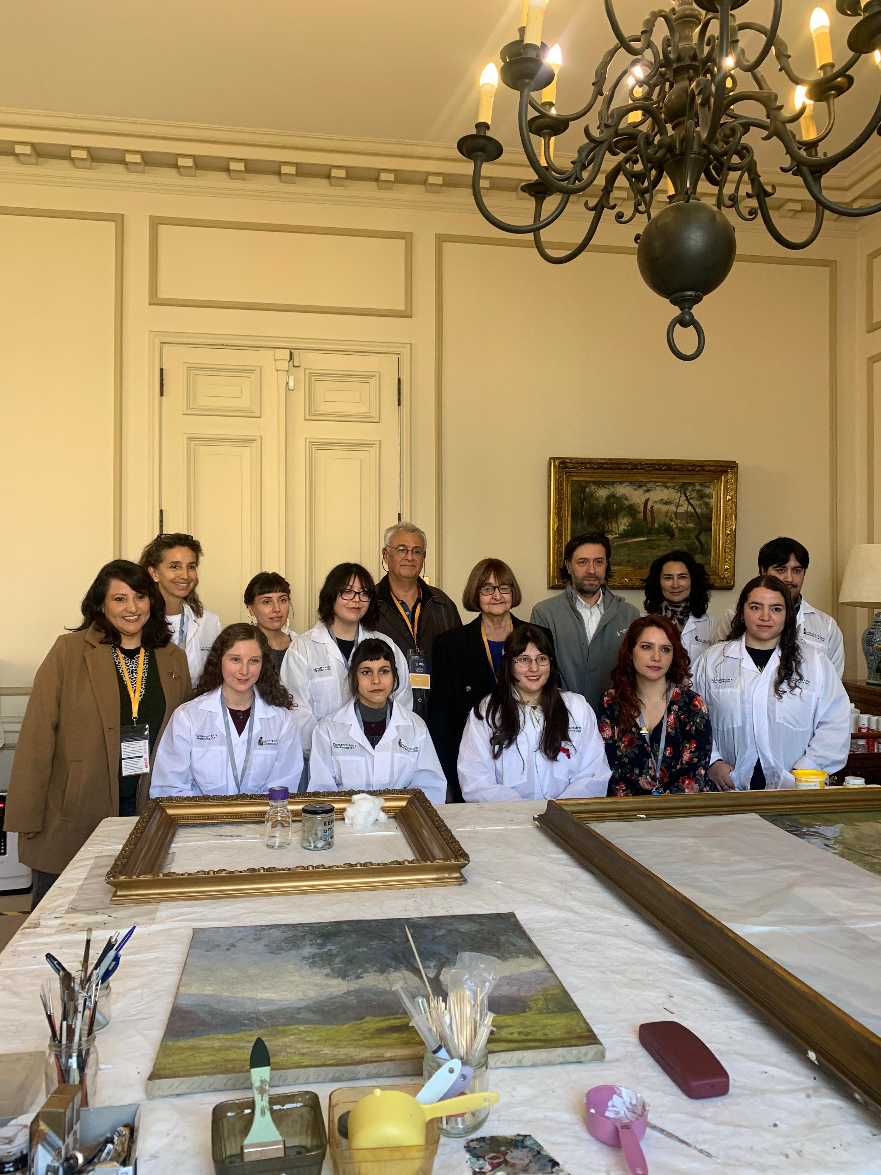 Durante la visita, dicho equipo esperó a las autoridades de la Universidad y el Banco Central en la sala Pedro Lira, donde estaban trabajando en las últimas restauraciones.