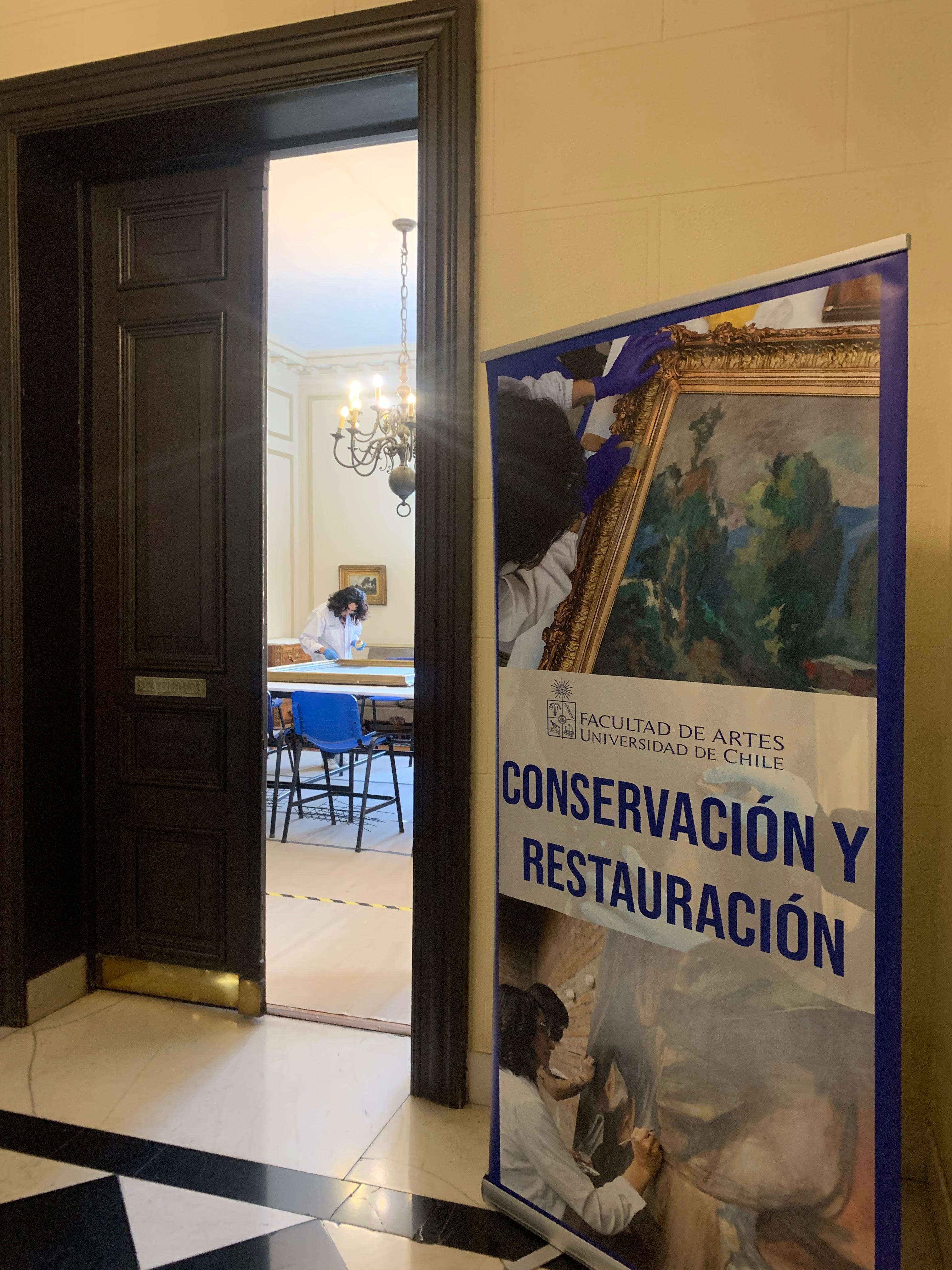 El equipo de restauración está conformado por 13 profesionales, entre ellos/as, tres pasantes del Postítulo en Conservación y Restauración del Patrimonio Cultural Mueble impartido por la Facultad (para saber más sobre el proceso de restauración, invitamos a leer la nota “Equipo de la Facultad de Artes trabaja en restaurar colección pictórica del Banco Central de Chile”).