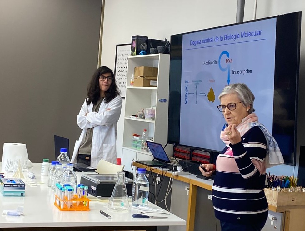 El domingo, la Dra. Victoria Guixé, investigadora del laboratorio de Bioquímica y Biología Molecular, presentó a los asistentes sobre las proteínas y enzimas. Además, de reacciones químicas reversibles e irreversibles.
