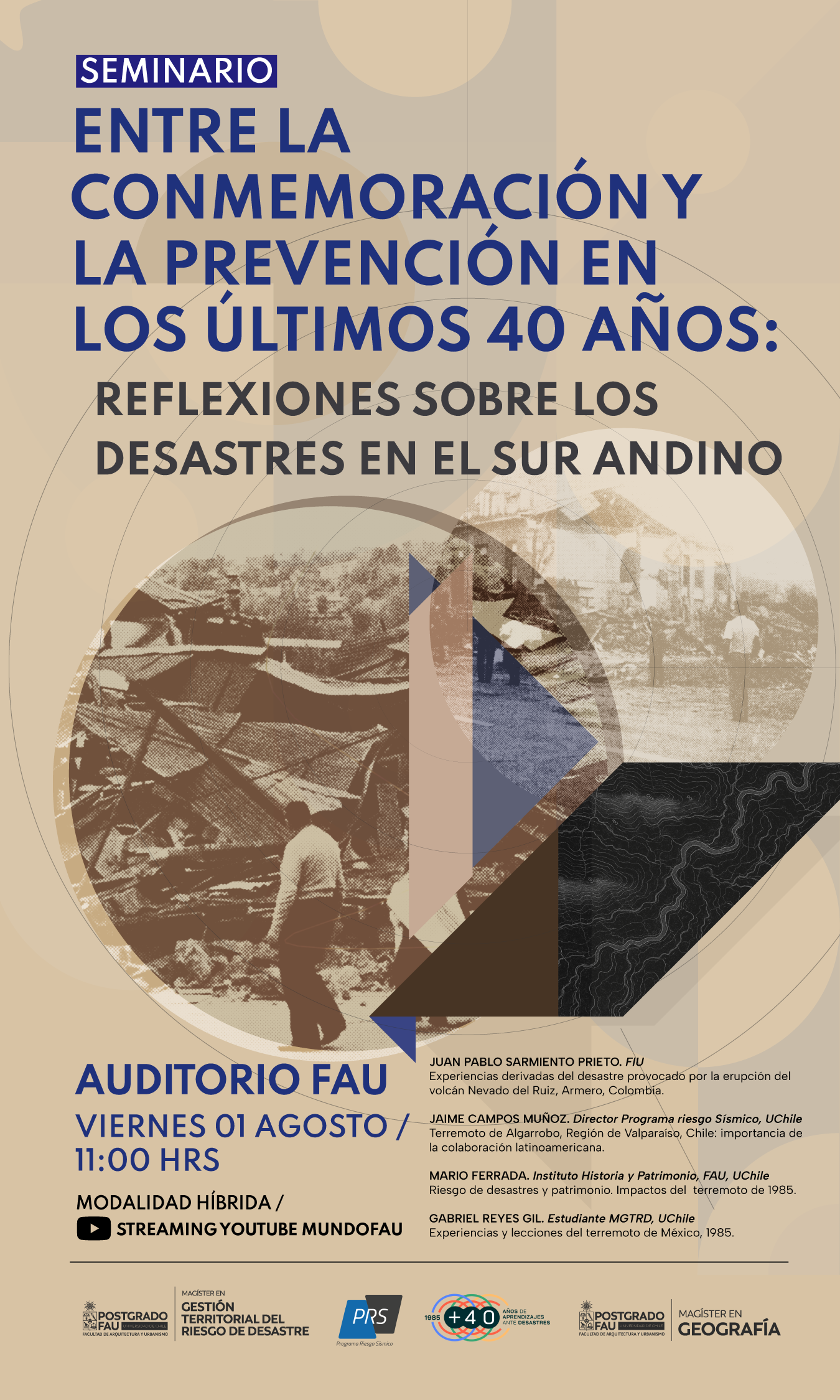 El seminario fue organizado por la Escuela de Postgrado de la Facultad de Arquitectura y Urbanismo (FAU) en colaboración con el Programa de Riesgo Sísmico de la Facultad de Ciencias Físicas y Matemáticas, en el marco del programa de Magíster en Gestión Territorial del Riesgo de Desastres.