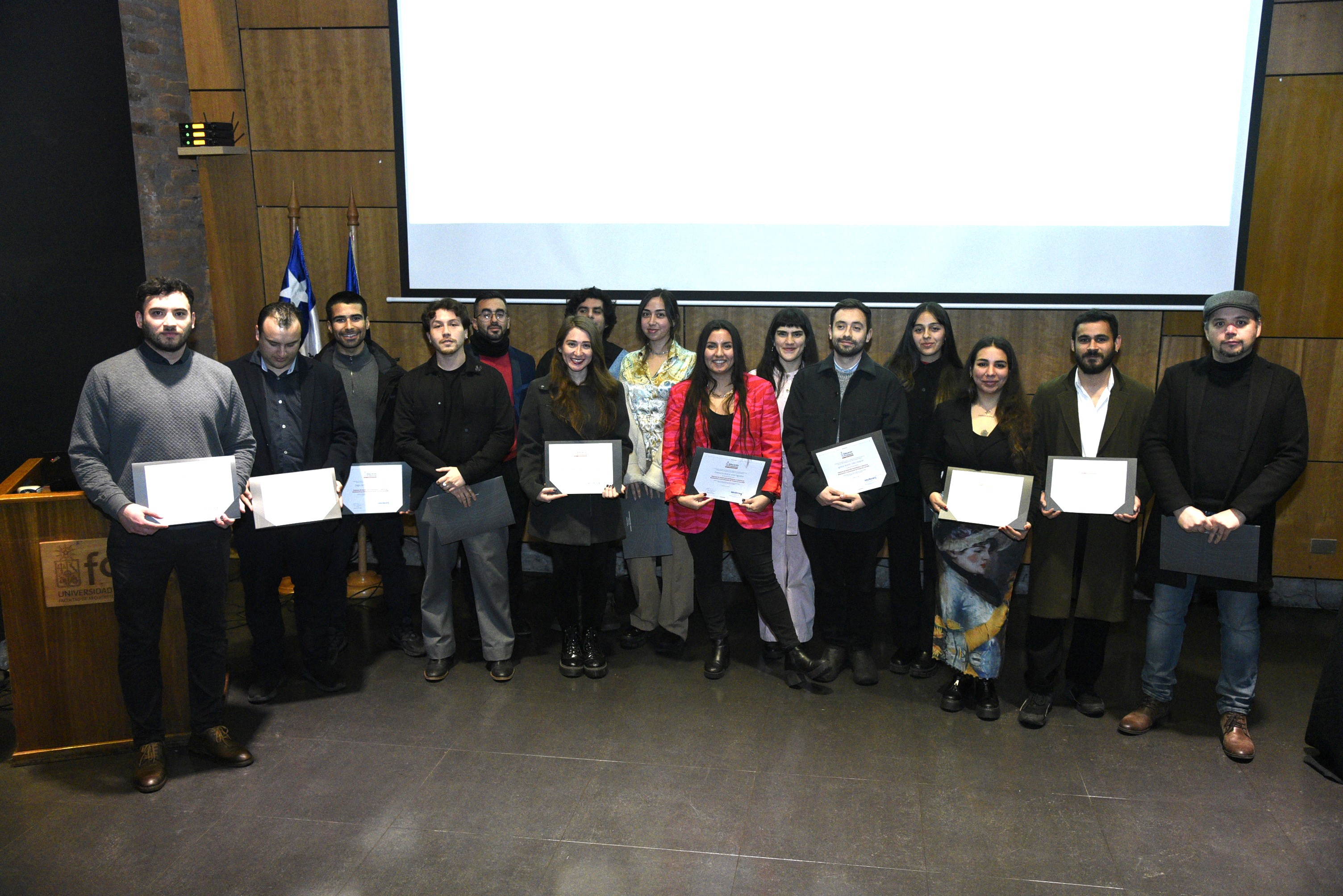 La Ceremonia, que reunió a las y los estudiantes junto con sus familias, amigos y parejas, fue presidida por el Director de Extensión y Vinculación con el Medio de la FAU, Prof. Alberto Texidó Zlatar y la Subdirectora de Educación Continua de la Universidad de Chile, Prof. Patricia Rojas Alarcón.