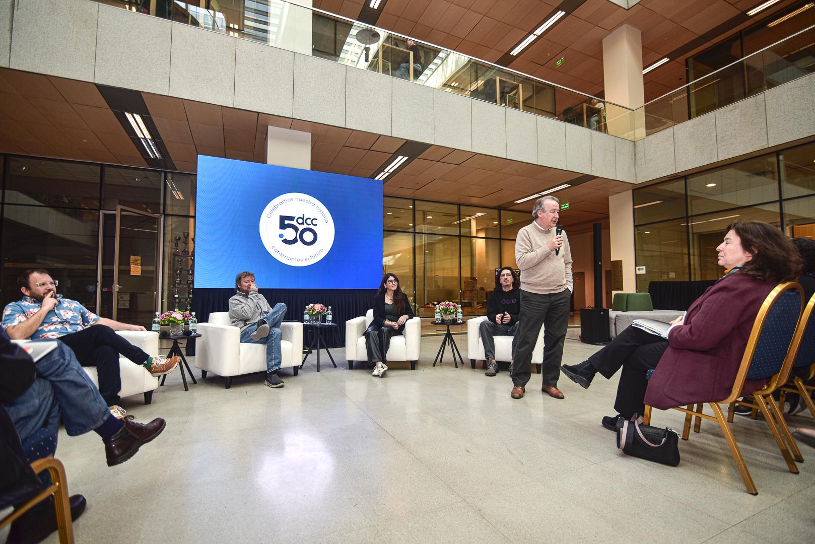 El comunicador también resaltó cómo la historia del DCC se entrelaza con la historia del país: “No es sólo la historia de una universidad. Es la historia de cómo Chile ha cambiado, de cómo la computación, la informática y los datos han transformado la manera en que el país crece y se proyecta al futuro”.