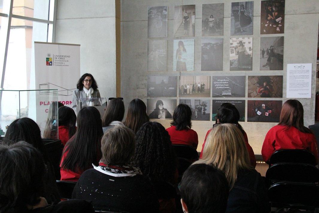 El pasado martes 19 de agosto, las y los estudiantes del Liceo Bicentenario Marta Brunet de Chillán visitaron la Universidad de Chile para inaugurar la exposición fotográfica “Huellas de Marta” en la Plataforma Cultural del campus Juan Gómez Millas. La muestra reúne 19 fotografías tomadas por los propios alumnos, quienes recrearon distintas facetas de la vida de la escritora y Premio Nacional de Literatura.