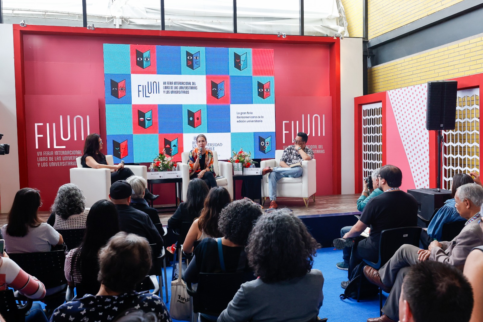 El penúltimo día de actividades de FILUNI, el sábado 30 de agosto, la UCHILE ofreció un conjunto de actividades. Todo comenzó con la presentación de “Museo Arte Contemporáneo UCH”, obra que revisita algunos de los tesoros que el Museo de Arte Contemporáneo de la Universidad de Chile ha reunido a través del tiempo desde su fundación en 1947. La presentación estuvo a cargo de Daniel Cruz, director del Museo de Arte Contemporáneo; y Cristian Gómez, académico de la Facultad de Arquitectura y Urbanismo de la UCHILE. El director del MAC se refirió a una de las actividades de vinculación con la comunidad desarrolladas en el último tiempo, como es la Academia MAC. “Esperamos tener representantes del Museo Universitario de Arte Contemporáneo (MUAC) para compartir lo que hacemos, cómo lo hacemos y cuál es el sentido con nuestras comunidades”, señaló el director, quien en la oportunidad también presentó los productos de Editorial MAC.