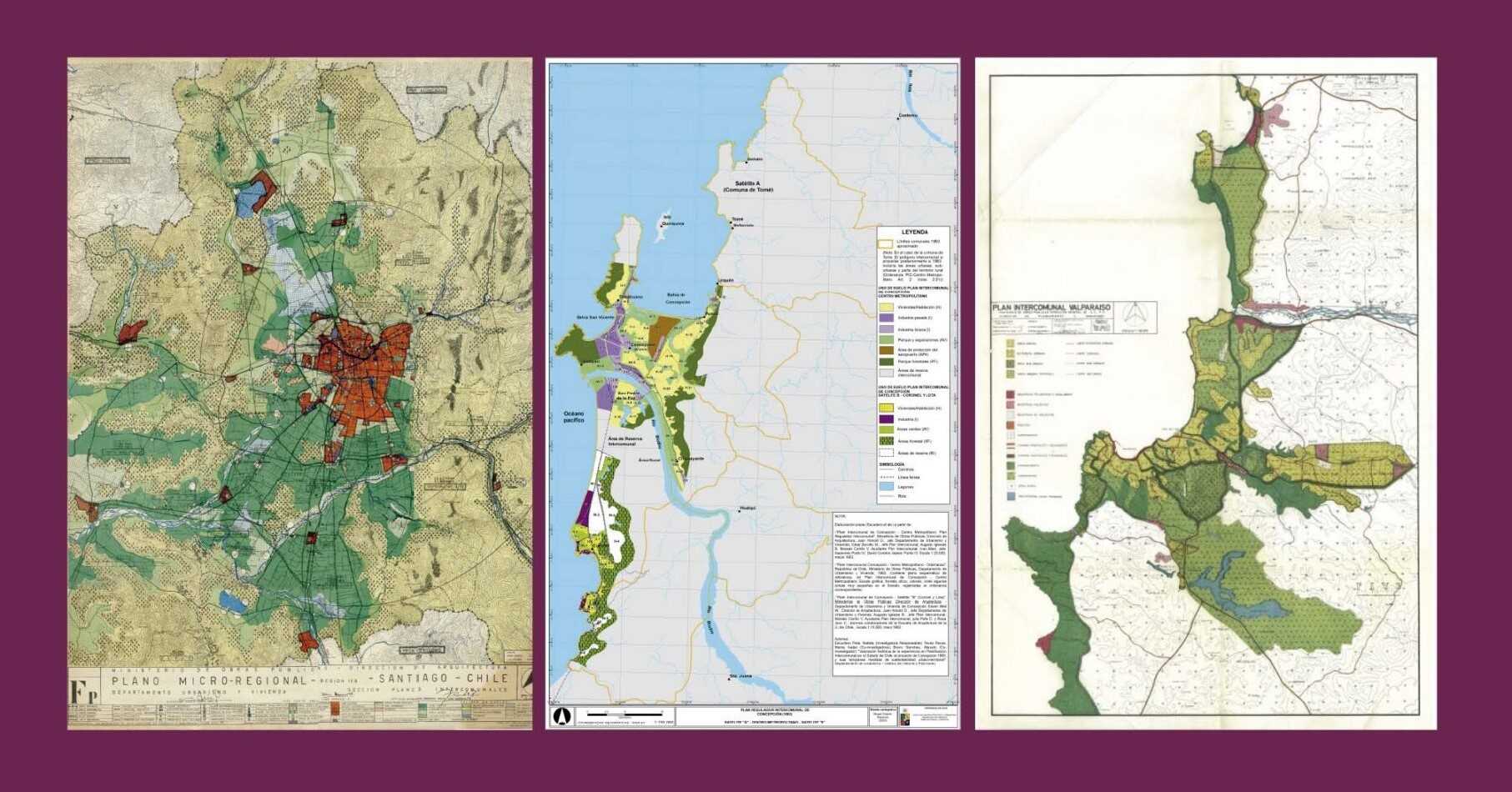 - Valparaíso (1965): Integró las comunas del Gran Valparaíso bajo un esquema metropolitano, con propuestas de conectividad vial, áreas verdes y protección de quebradas. Fue precursor en planificación costera y portuaria.