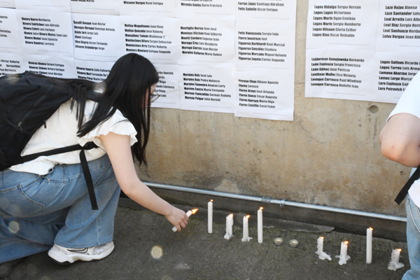 En representación de la comunidad estudiantil FOUCh, el Vicepresidente del CEO, Eduardo Gajardo señaló que “la mayoría de nombres que están en esta pared eran de nuestra edad, la mayoría tenía entre 18 y 27 años, hay niños de 14 años desaparecidos, hay personas mayores, hasta los 78 años”, e invitó a las y los presentes a tomarse “unos momentos para acercarse a este lugar y reflexionar sobre este hecho. Nos volvemos indiferentes con el tiempo, suele suceder que nos olvidamos de nuestro pasado y del daño que le podemos causar al resto, simplemente, por pensar diferente; entonces, es muy importante venir aquí, reflexionar sobre lo que ocurrió y hacer lo posible para que no vuelva a suceder en nuestro país, ni en ningún otro”.