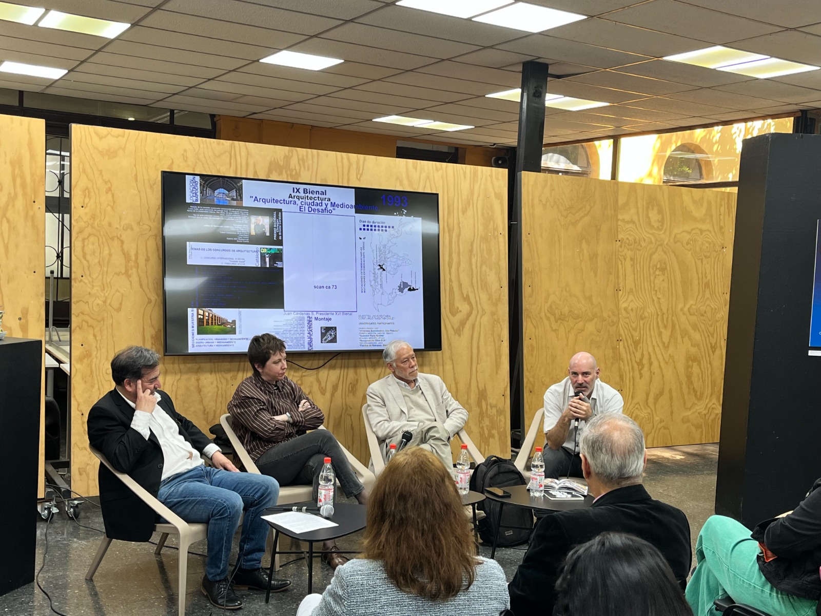 La académica también ofreció una visión crítica respecto del estado actual de la arquitectura que se manifiesta en el afiche de la bienal 2025. “Expresa el estado del país, un cambio que nos habla también de la dilución de la arquitectura, porque hoy día no hay proyectos públicos, la arquitectura está detenida en este momento, muchas oficinas están en crisis. Entonces me parece que es tremendamente sintomático del estado actual de la arquitectura. Es una nebulosa, en una ruina medio destruida, que como sabemos es un vestigio de un proceso social que sucedió hace un tiempo y que todavía estamos recuperándonos y entonces hablamos de ciertos conceptos abstractos, muy estéticos, muy estilizados todos, muy teóricos, muy intelectuales, pero no hay proyecto público, no hay proyecto político tampoco, ni accionar político y constructivo en la arquitectura”.