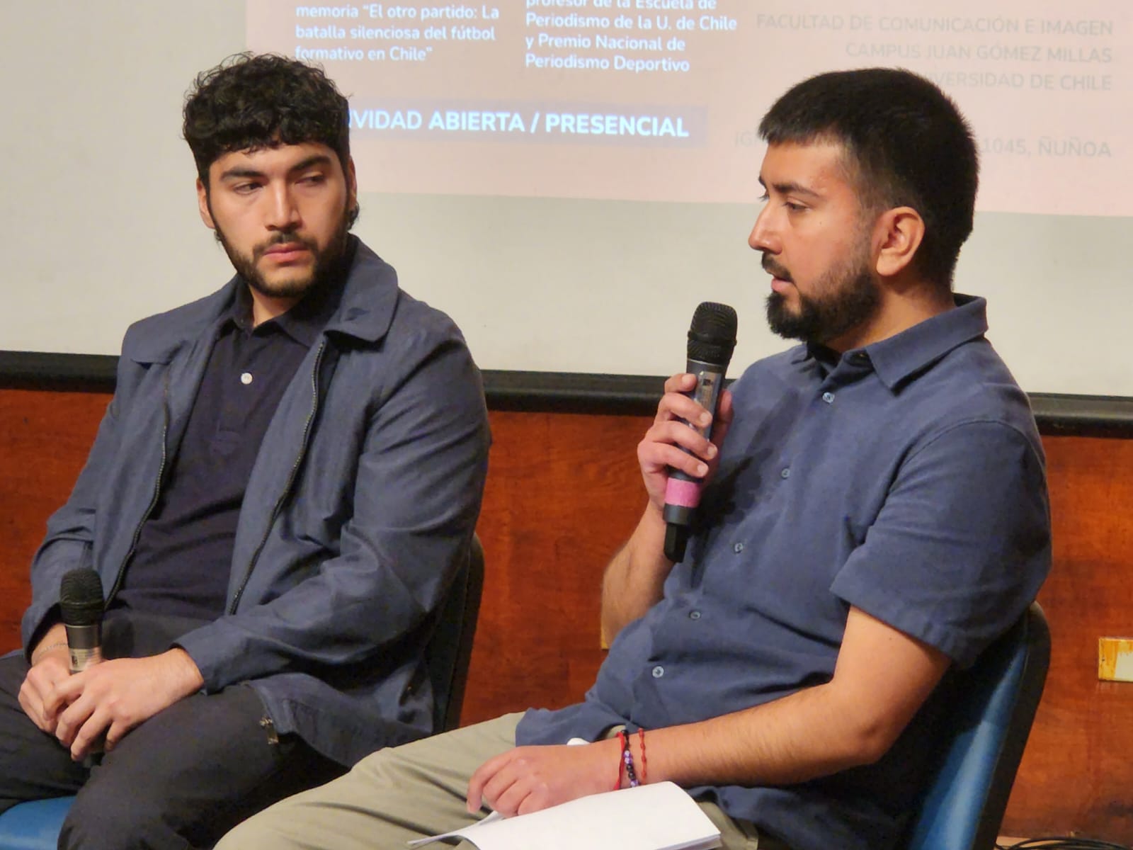 El panel se completó con la participación de Felipe Huenumán, periodista que presentó los hallazgos de su memoria de título, centrada en la relación entre representantes y futbolistas menores de edad, en la que evidenció las dinámicas de codependencia entre ambas partes. “Se daba mucho que representantes compraban departamentos o casas para alejar a los muchachos de las zonas vulnerables en las que vivían, priorizando que los futbolistas se concentren únicamente en jugar”, explicó.