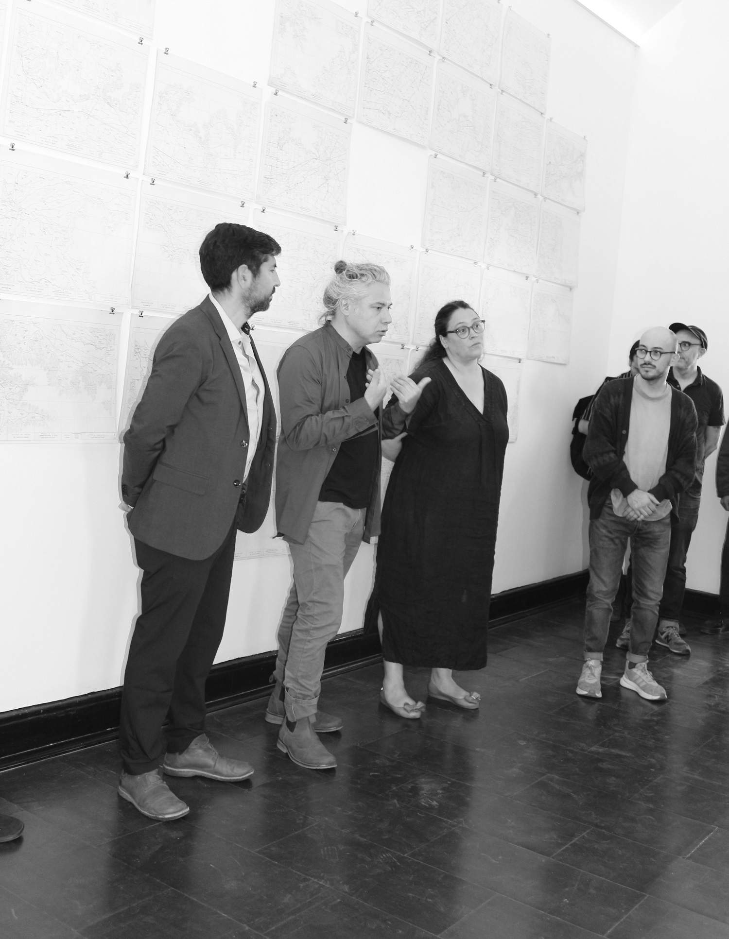 Por su parte, Fernando Gaspar destacó la trayectoria de Francisca Montes, quien vuelve a participar en el Foro de las Artes tras haber formado parte de su primera edición en la Casa Central de la Universidad de Chile. “En aquel entonces, el Foro era un puñado de voluntades por posicionar la creación artística dentro de la universidad”, recordó, resaltando el esfuerzo sostenido de la FAU por abrir espacios para la experimentación visual y el pensamiento artístico. Gaspar también valoró la propuesta estética de la muestra, que combina materiales gráficos y audiovisuales: “Me parece muy atractivo no solo el carácter estático de los mapas, sino también el vibrar y respirar del video, que humaniza la obra y nos recuerda que fue creada por una persona y no por un algoritmo”.