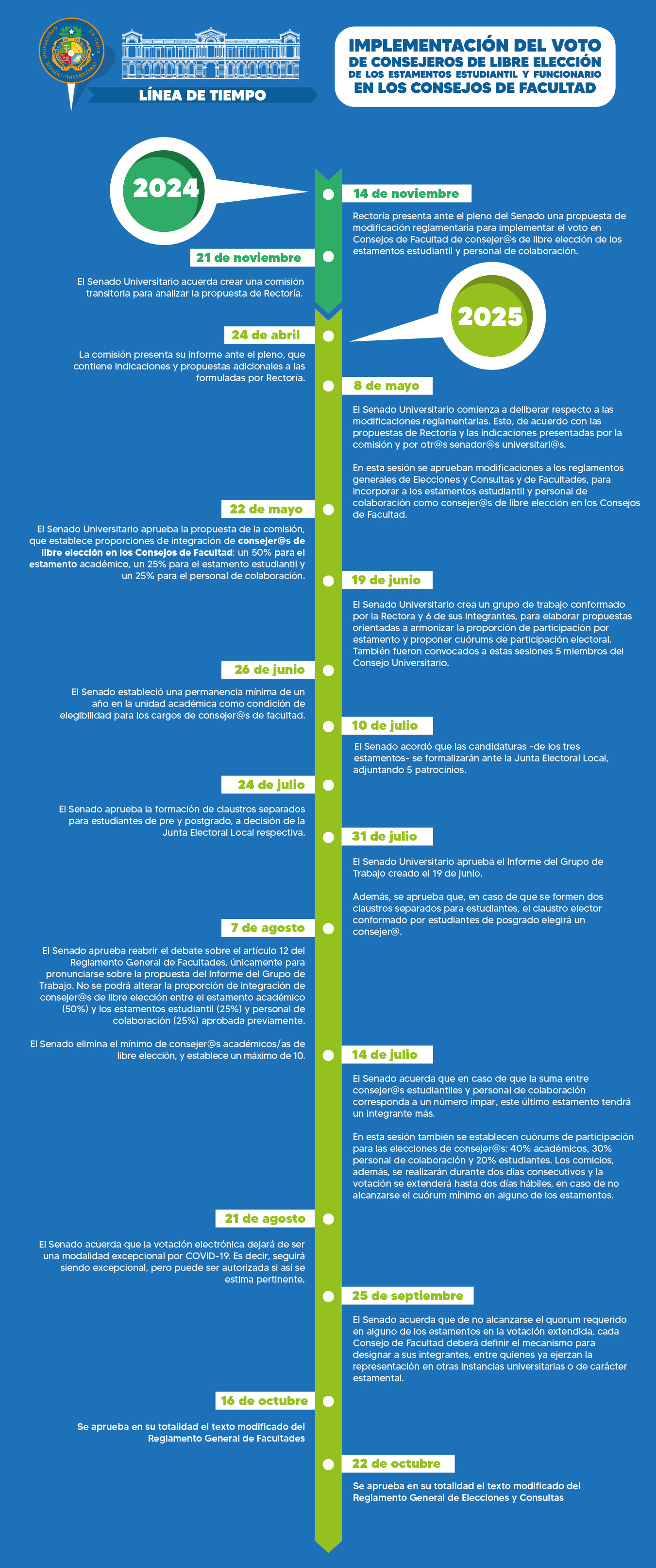 Línea de tiempo implementación voto triestamental en Consejos de Facultades
