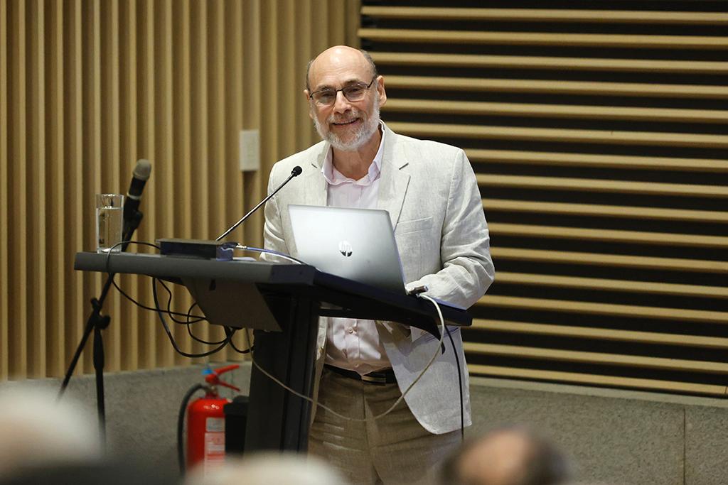En sus palabras de bienvenida, el decano Francisco Martínez destacó la trascendencia del legado de Saragoni, no solo por sus aportes científicos, sino también por el sello humano y docente que lo caracteriza. Recordó sus primeros años como estudiante en la Facultad y el impacto que tuvo asistir a sus clases. “Rodolfo tenía una manera especial de enseñar. Lograba transmitir la pasión por temas complejos con una claridad y entusiasmo únicos. Así comprendí lo que significa ser profesor”, señaló.