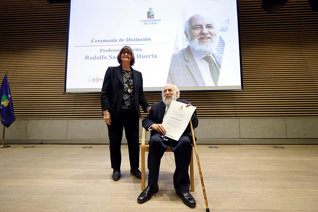 En una emotiva ceremonia realizada el viernes 24 de octubre en el Auditorio Enrique d’Etigny de la FCFM, la Universidad de Chile distinguió al profesor Rodolfo Saragoni Huerta con el título de Profesor Emérito, en reconocimiento a su sobresaliente trayectoria académica y a sus contribuciones pioneras en el campo de la ingeniería sísmica.